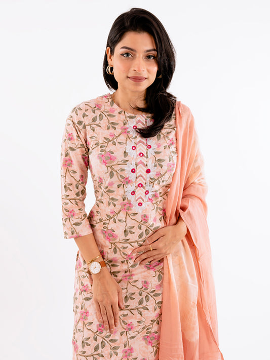 Baby Pink Lotus Printed Afghani Cotton Suit