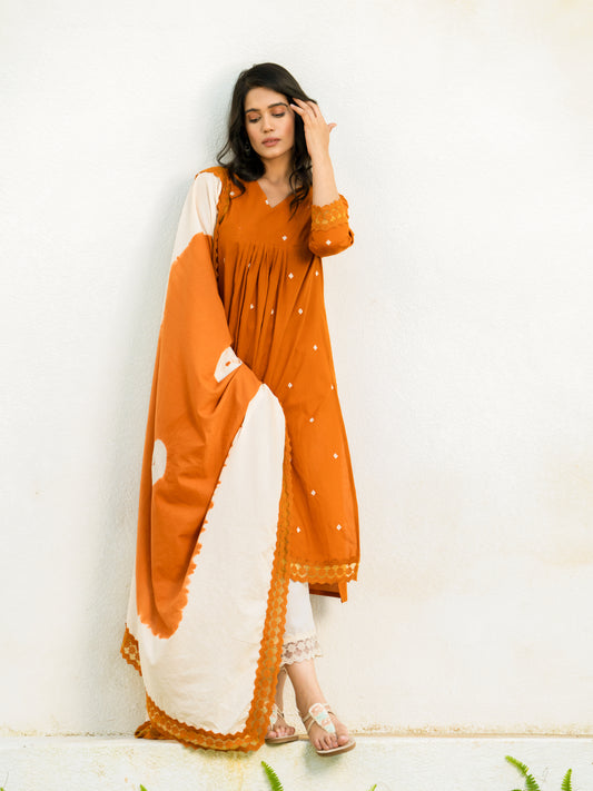 Indigo Blue Patch Work Anarkali Cotton Kurta
