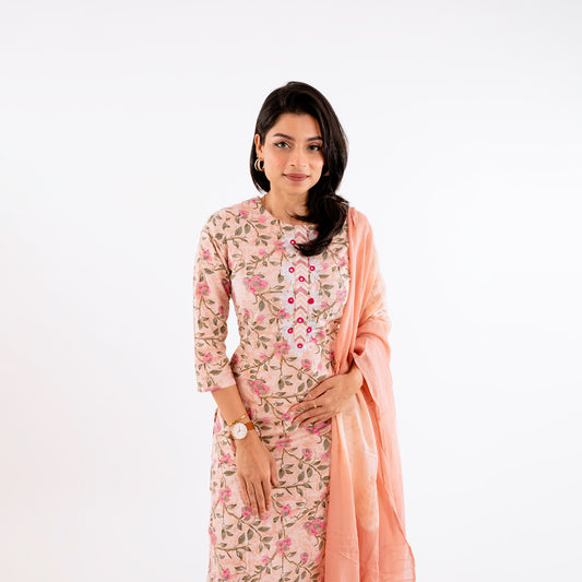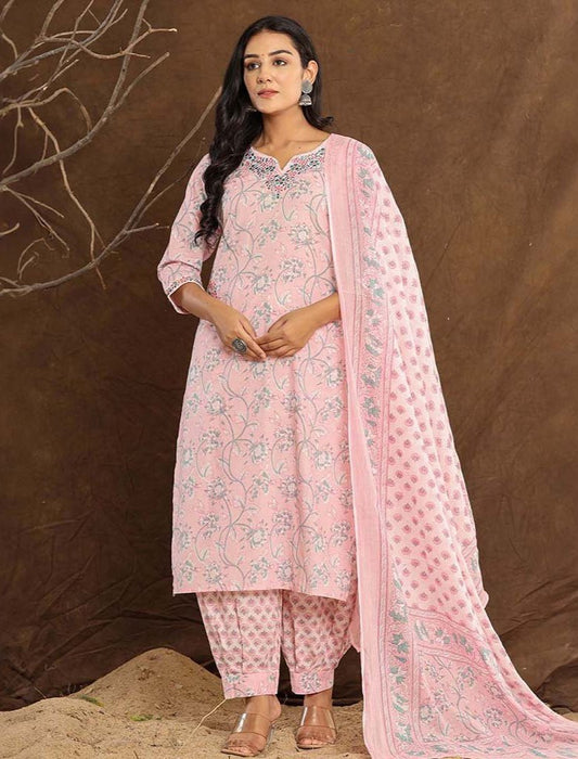 Baby Pink Lotus Printed Afghani Cotton Suit