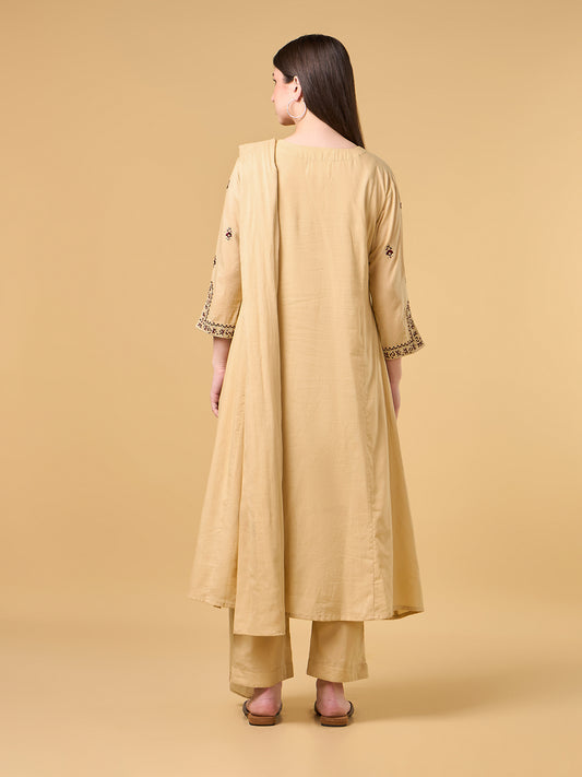 Beige Hakoba Round Neck Readymade Cotton Blouse
