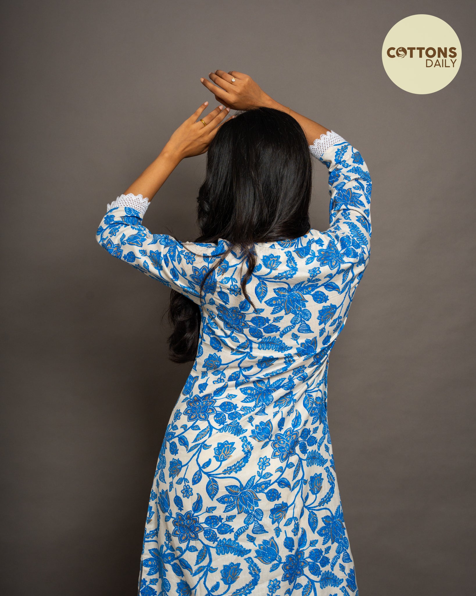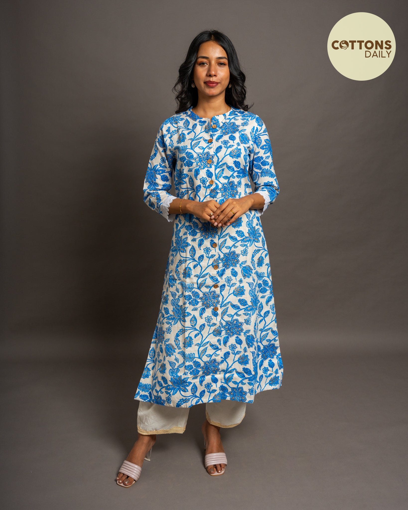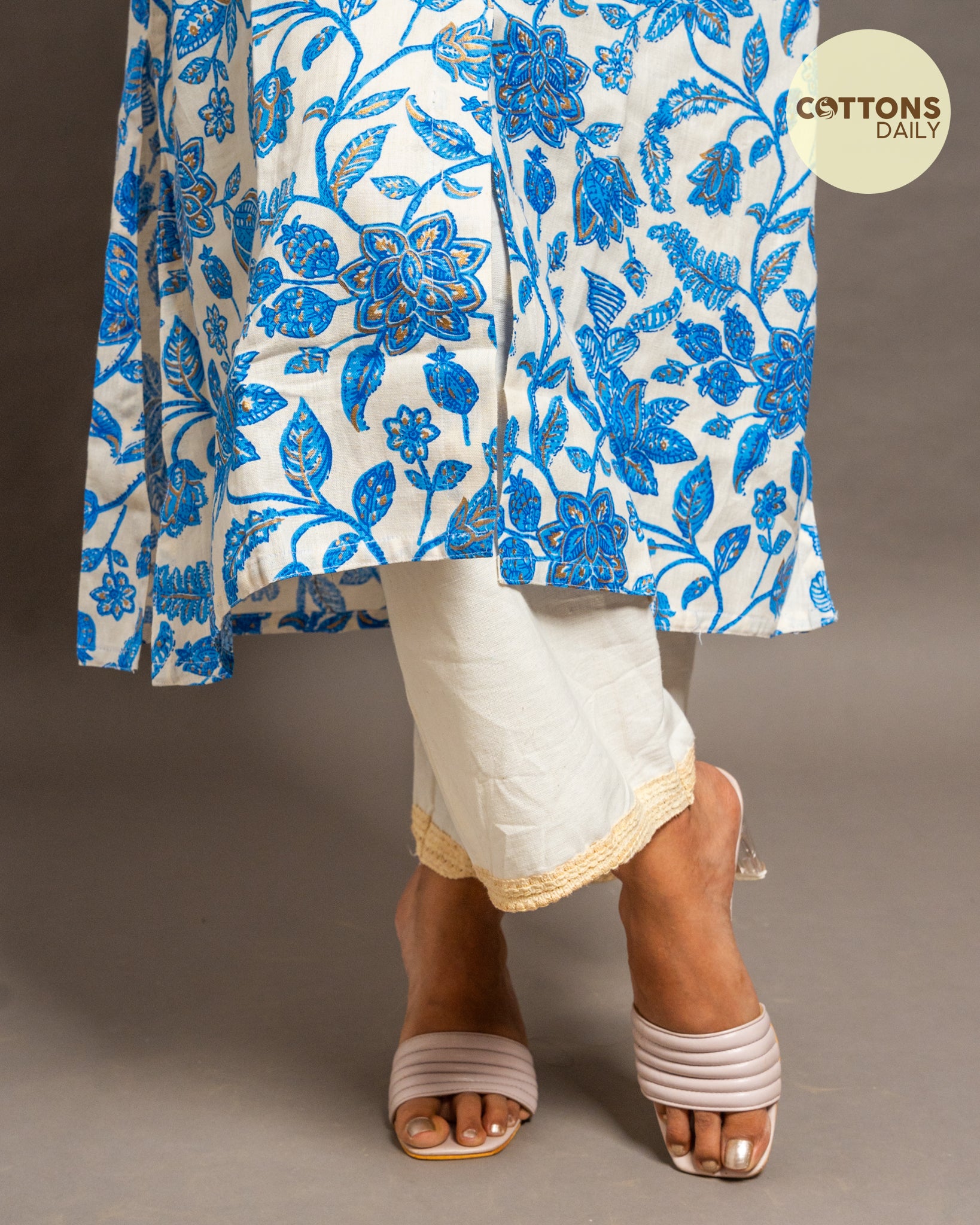 Breezy Blue Jaal Handblock Print Cotton Kurta