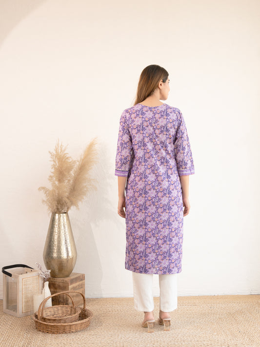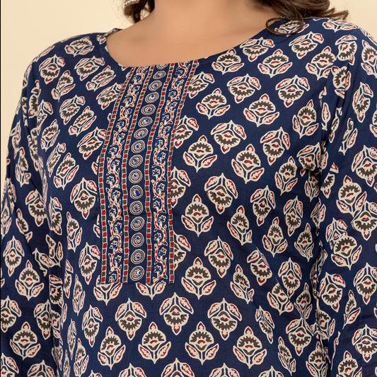Indigo Blue Patch Work Anarkali Cotton Kurta
