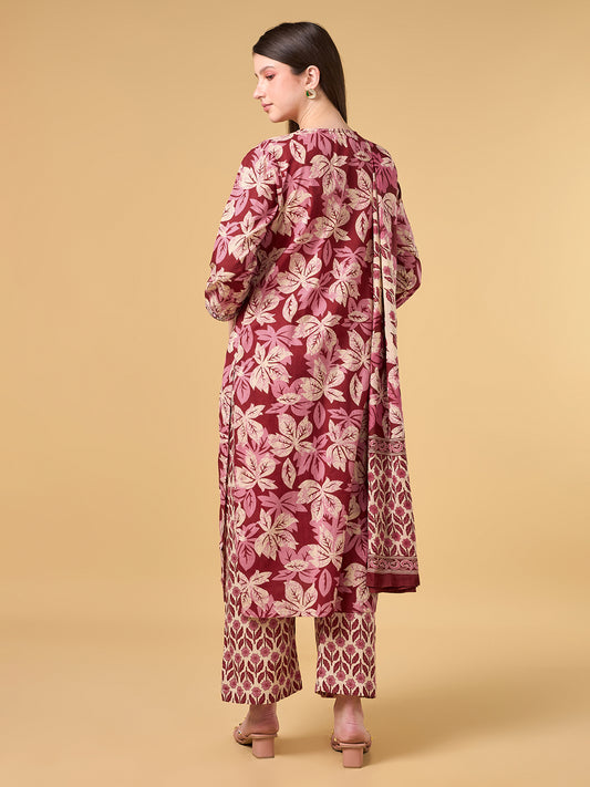 -72% OFFMaroon Tropical Printed Cotton Suit
