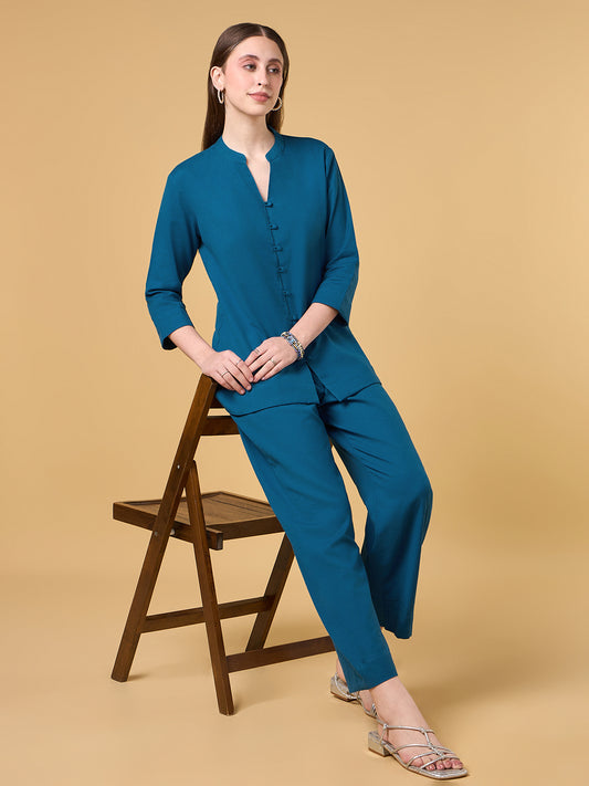 Mint Green Hakoba Round Neck Readymade Cotton Blouse