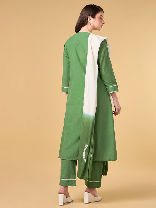 Ivory Block Print Gota Patti Festive Cotton Suit
