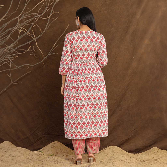 -74% OFFRed Palm Leaf Printed Cotton Kurta