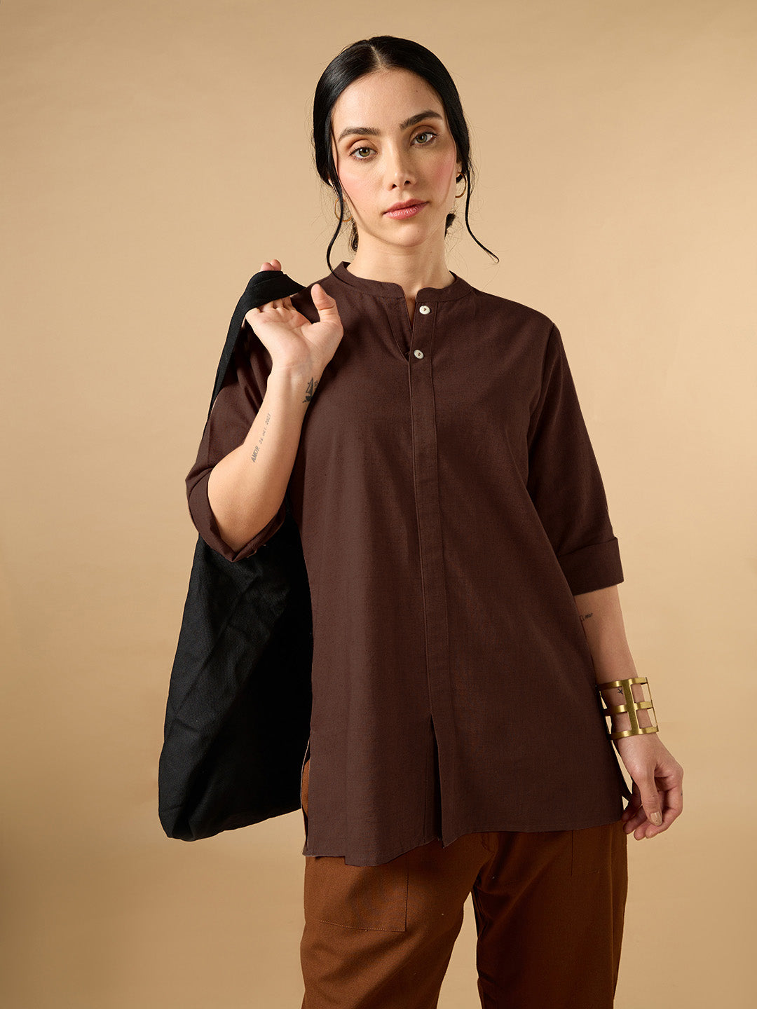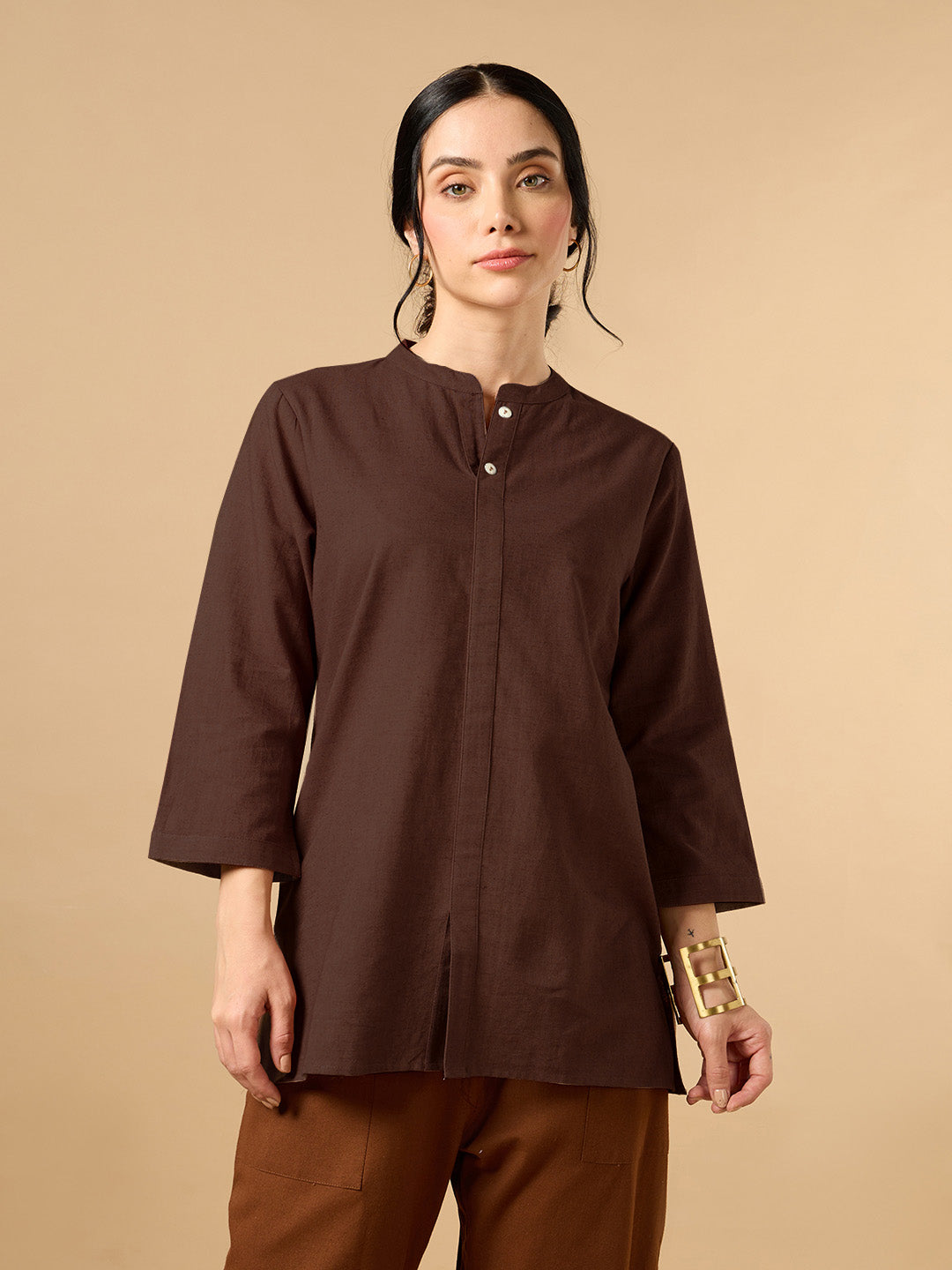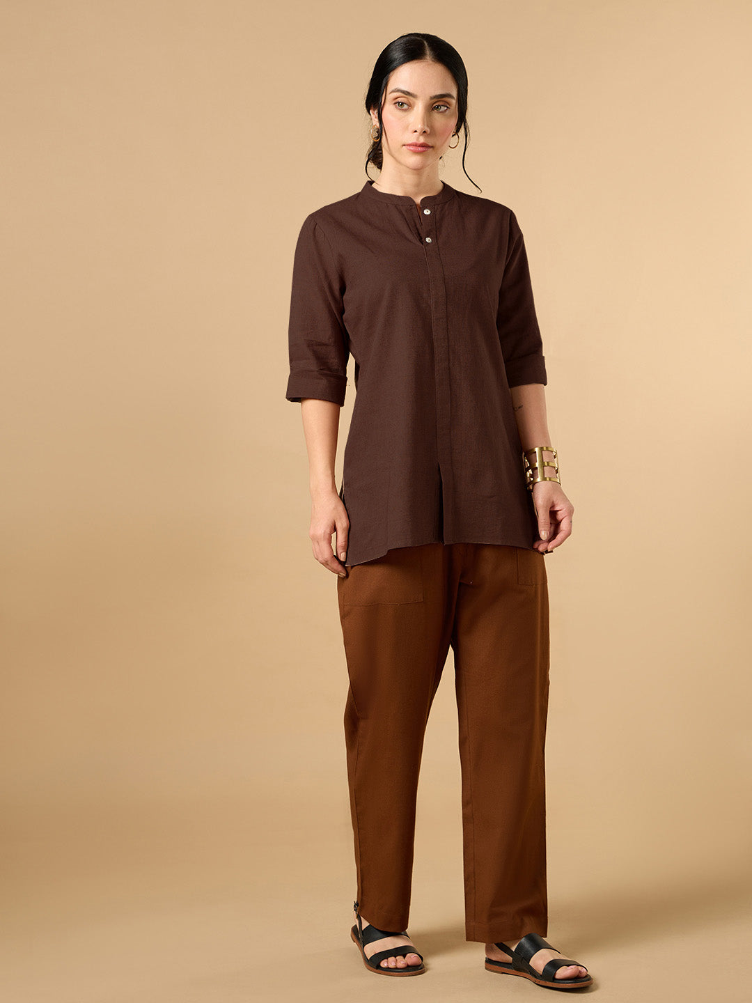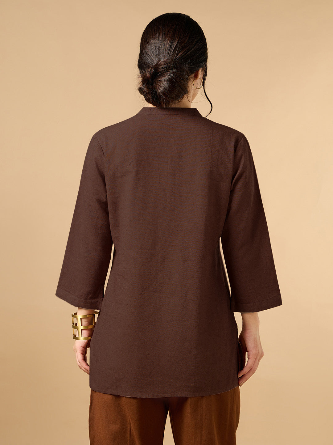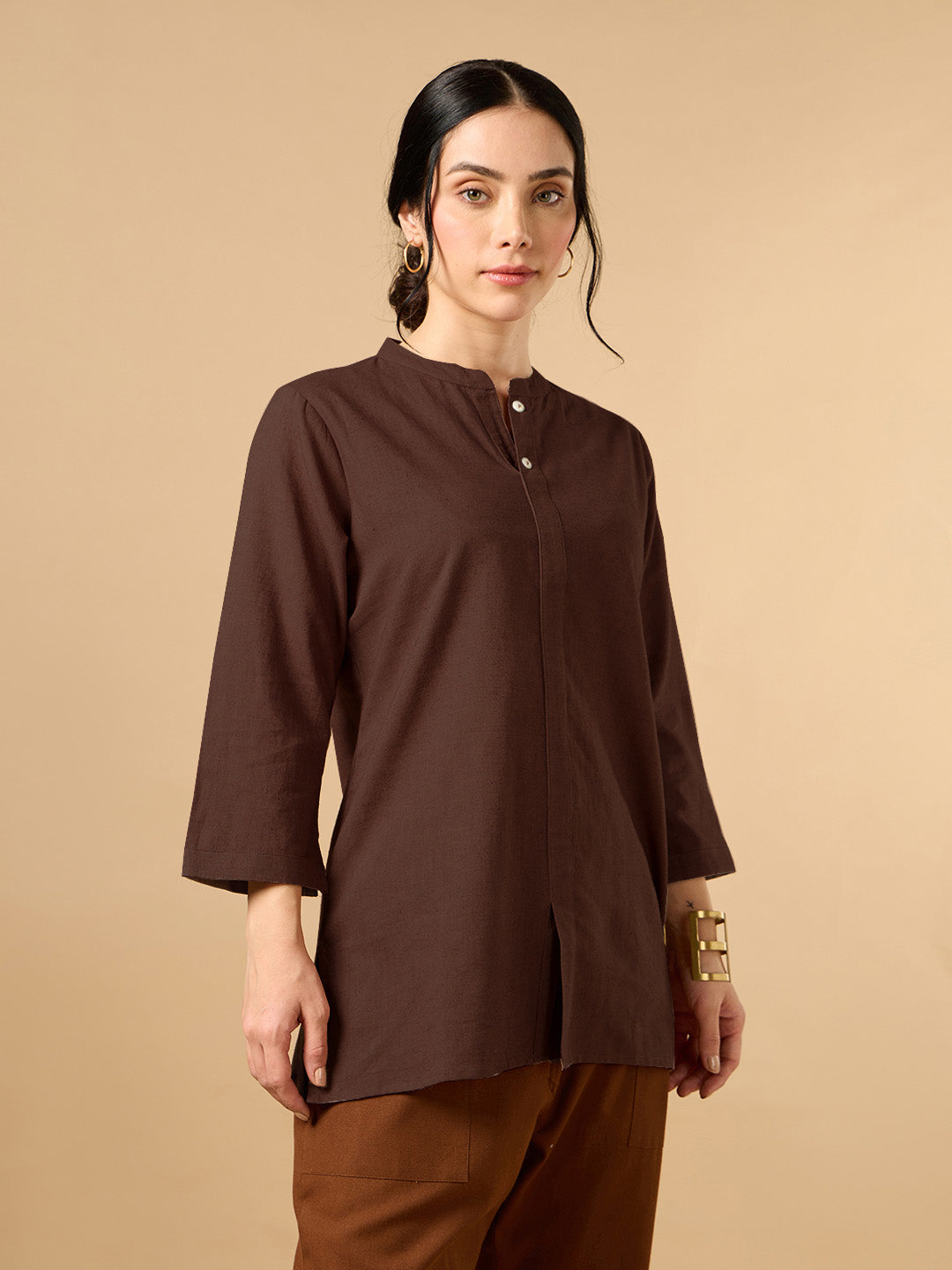 Elevate your ethnic wardrobe with the Classic Linen Dark Brown Short Kurta, a perfect blend of sophistication and comfort. Crafted from premium cotton-linen fabric, this kurta features a Dark Brown Color that exudes understated elegance, making it ideal for casual outings, festive gatherings, or even relaxed office wear.