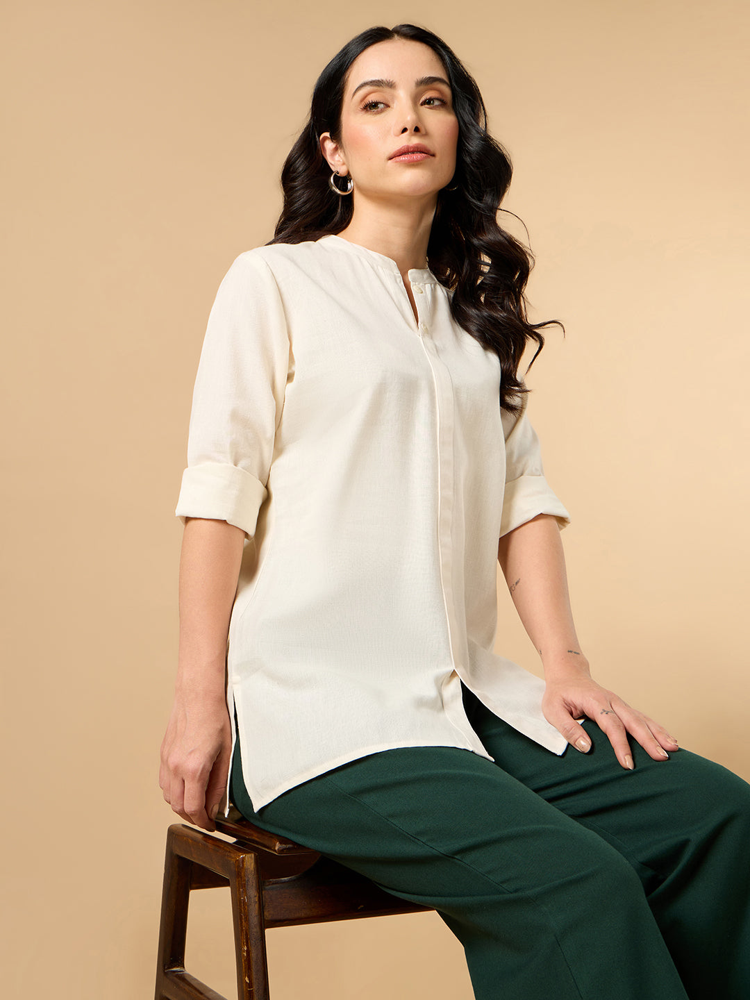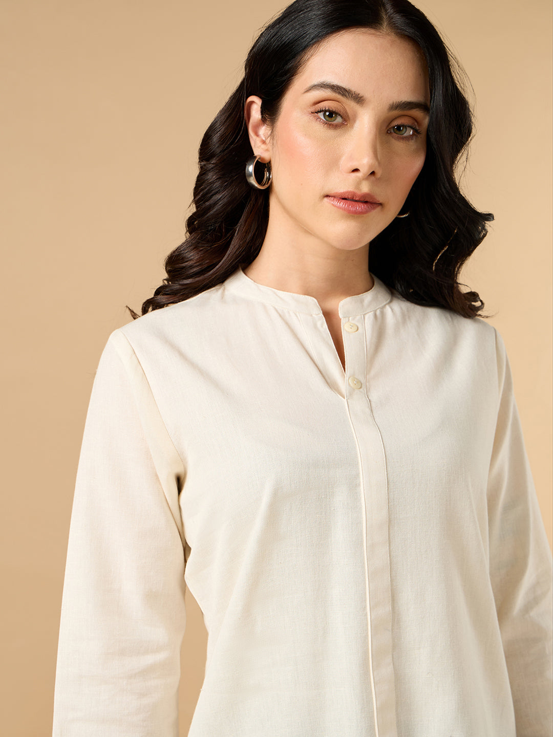 Elevate your ethnic wardrobe with the Classic Linen Off White Short Kurta, a perfect blend of sophistication and comfort. Crafted from premium cotton-linen fabric, this kurta features a solid off-white hue that exudes understated elegance, making it ideal for casual outings, festive gatherings, or even relaxed office wear.