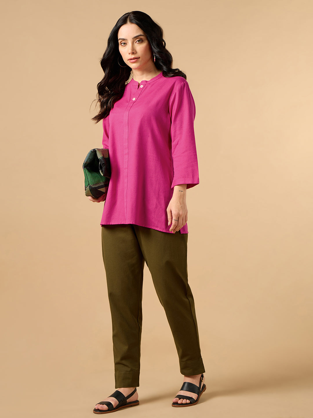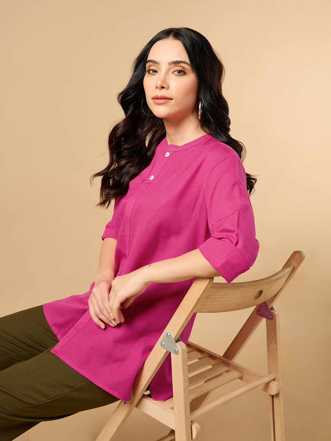 Elevate your everyday wardrobe with the Classic Linen Pink Short Kurta—a perfect blend of elegance and comfort. Designed to keep you effortlessly stylish, this kurta is ideal for both casual outings and office wear.