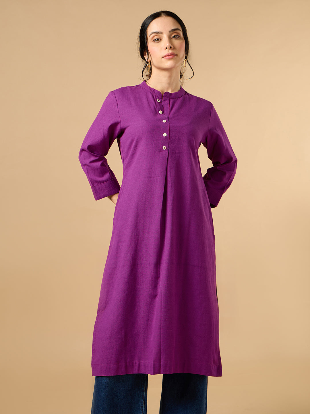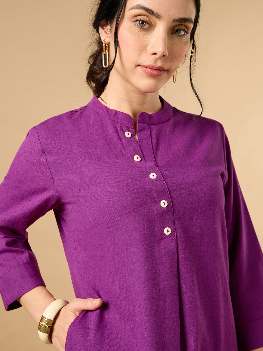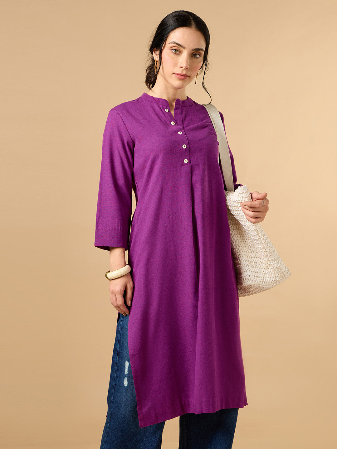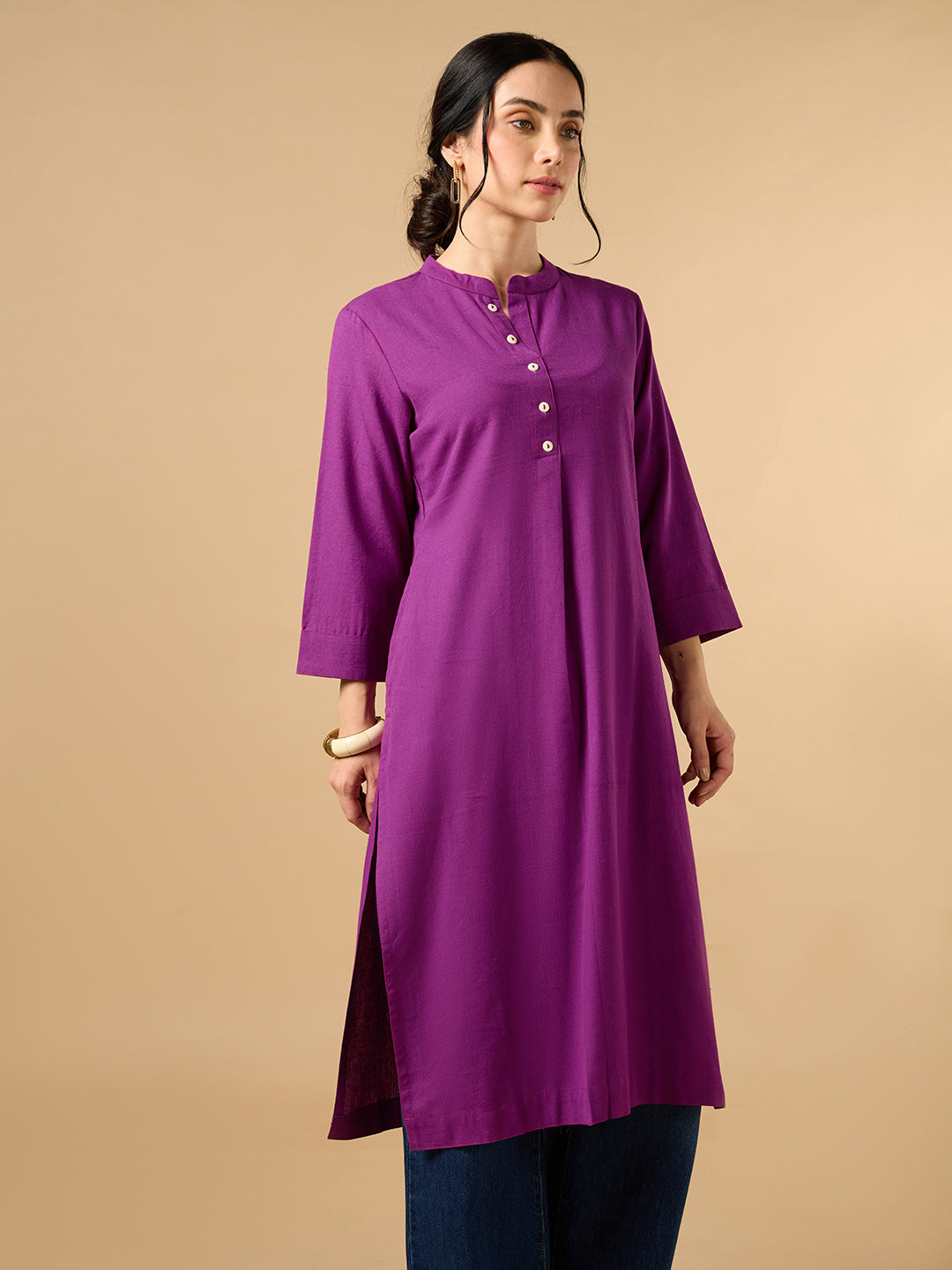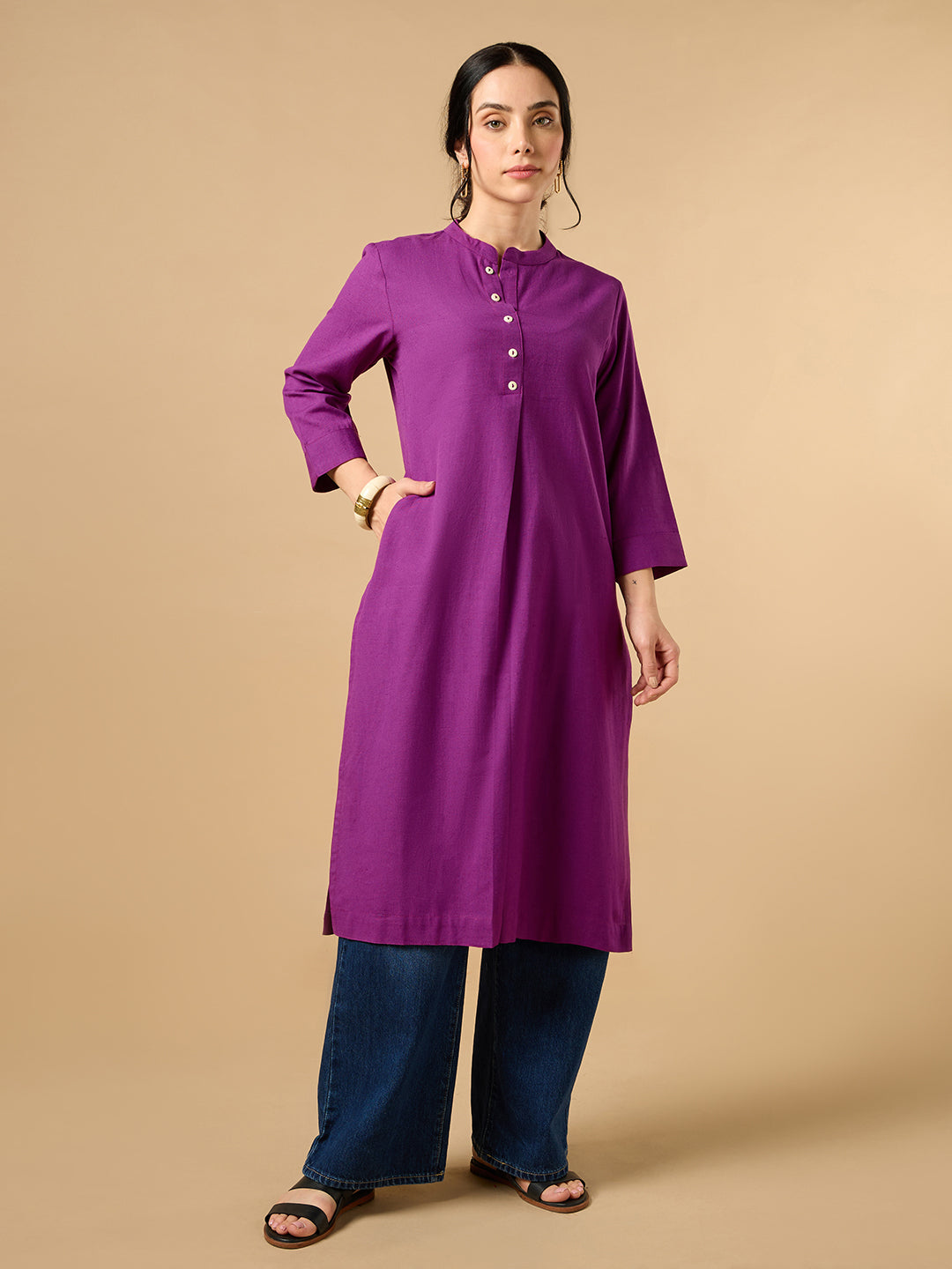 Indulge in timeless elegance with the Classic Linen Purple Straight Long Kurta. Made from breathable cotton linen, this kurta ensures all-day comfort while keeping your look effortlessly sophisticated.