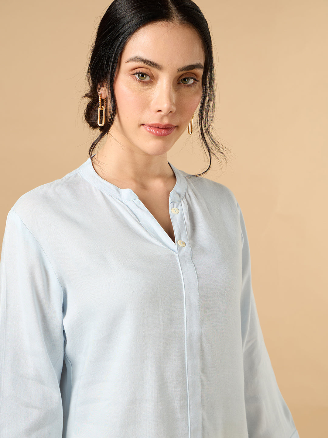 Elevate your ethnic wardrobe with the Classic Linen Sky Blue Short Kurta, a perfect blend of sophistication and comfort. Crafted from premium cotton-linen fabric, this kurta features a Sky Blue Color that exudes understated elegance, making it ideal for casual outings, festive gatherings, or even relaxed office wear.