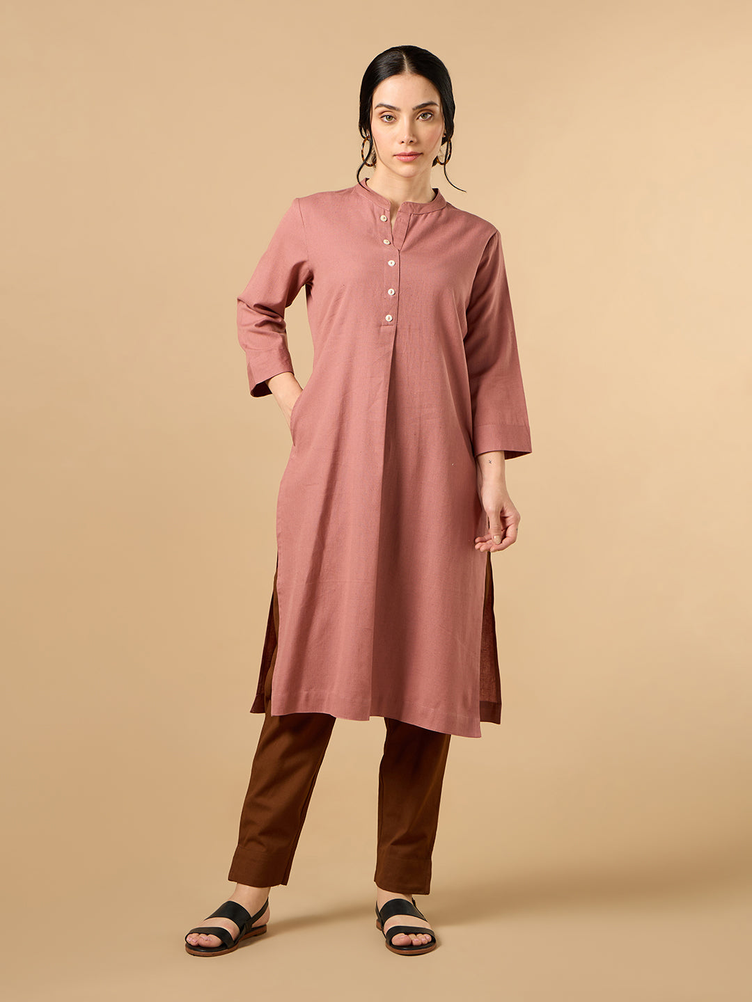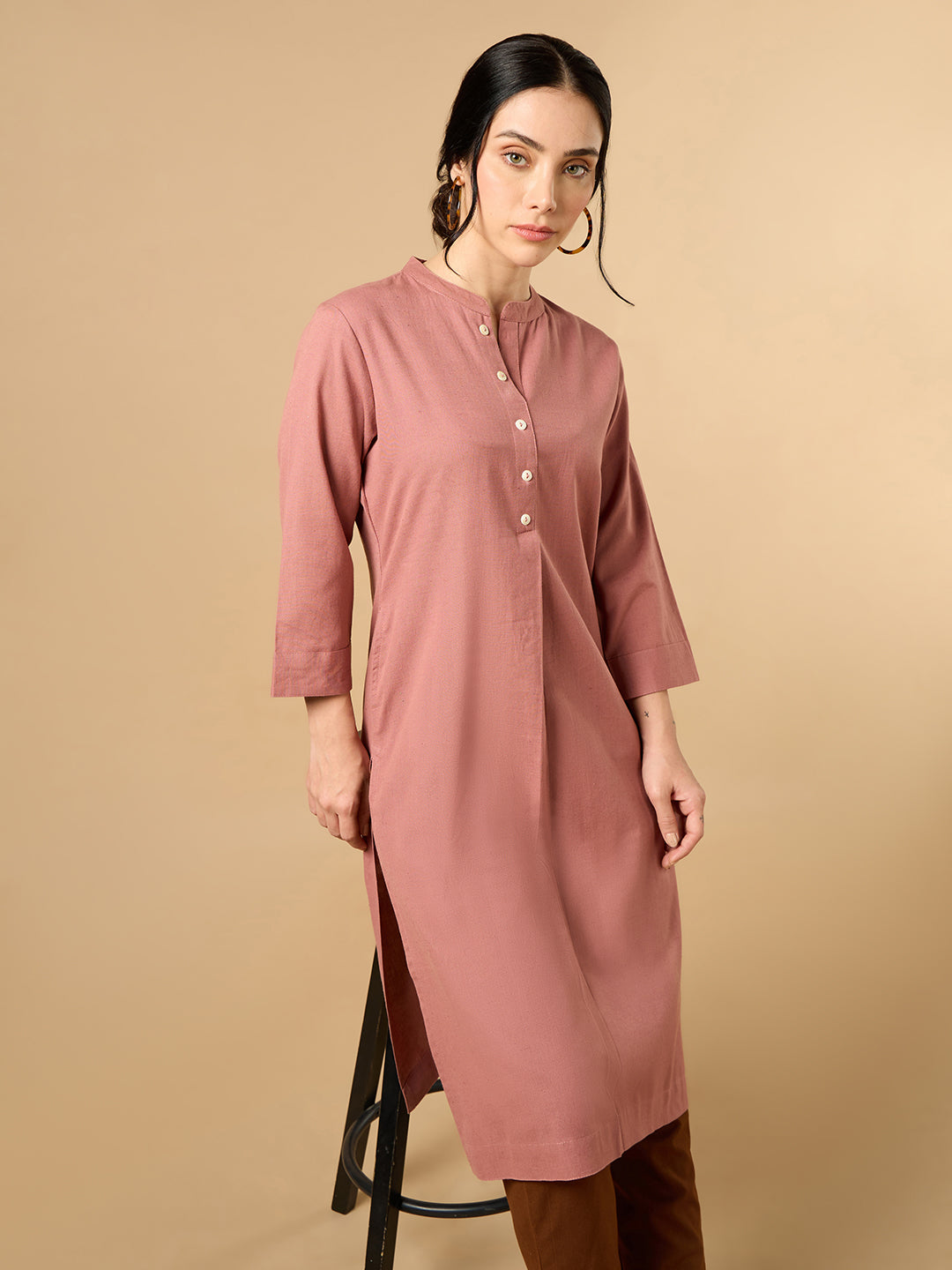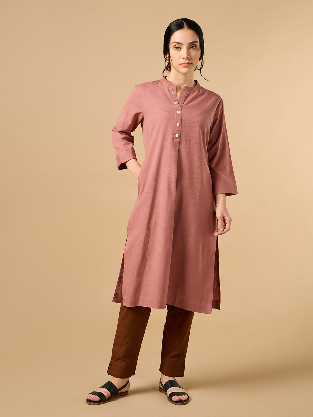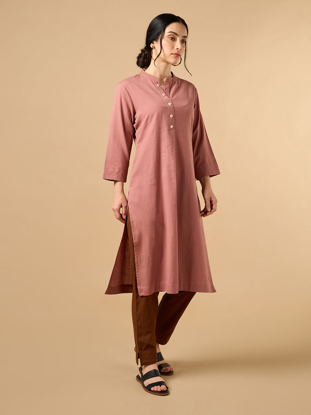 Step into effortless elegance with the Classic Linen Watermelon pink Straight Long Kurta – a timeless addition to your ethnic wardrobe. Designed with a clean and minimalistic aesthetic, this long kurta is tailored from a breathable cotton-linen blend that keeps you cool and comfortable all day long.