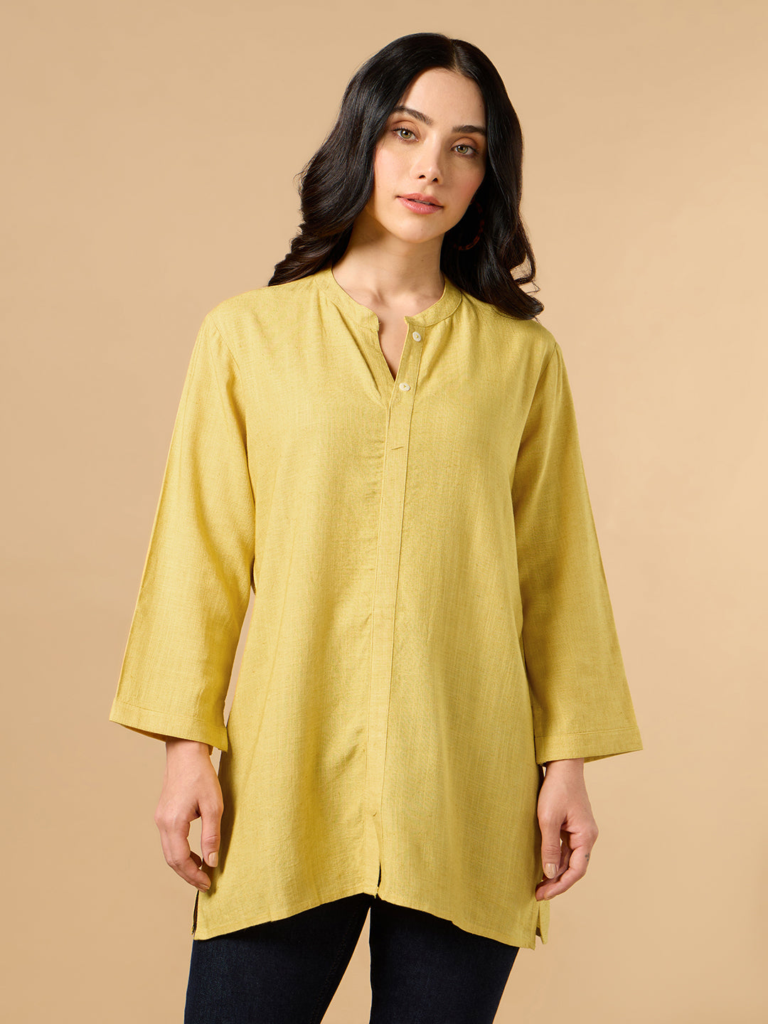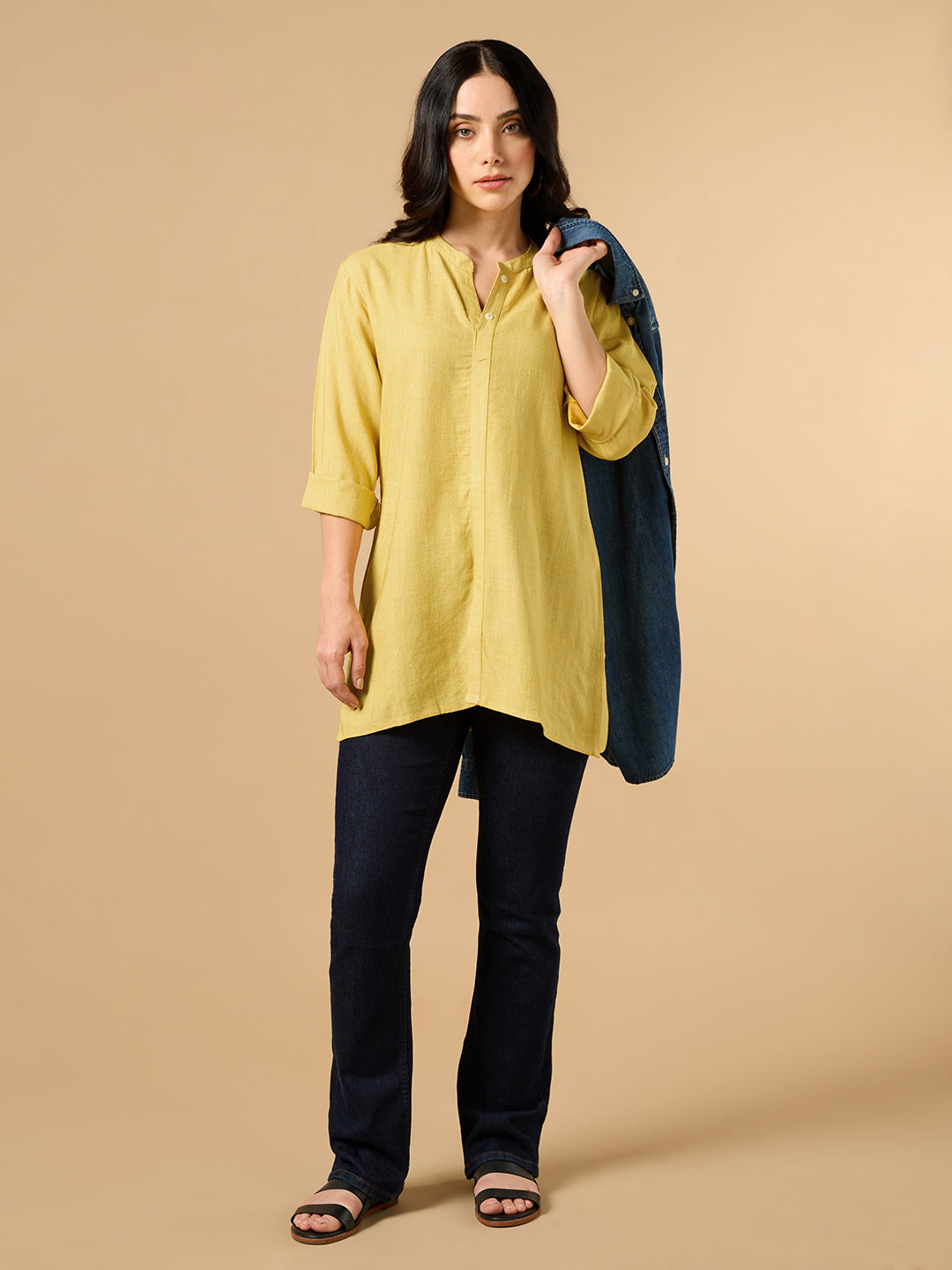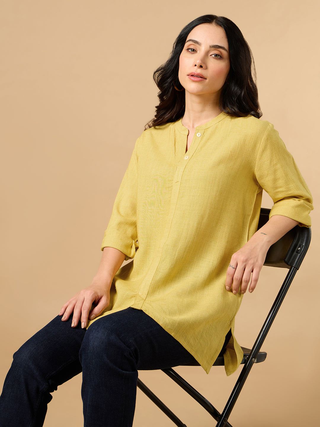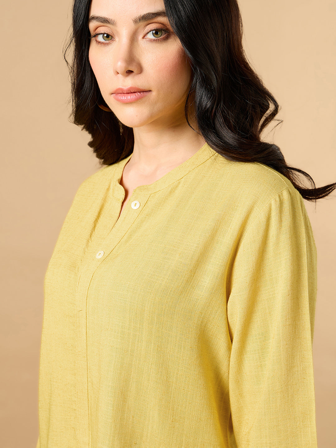 Brighten up your wardrobe with the Classic Linen Yellow Short Kurta, a perfect blend of comfort and elegance. Designed for both casual and office wear, this kurta offers a refreshing look with its soft and breathable fabric.