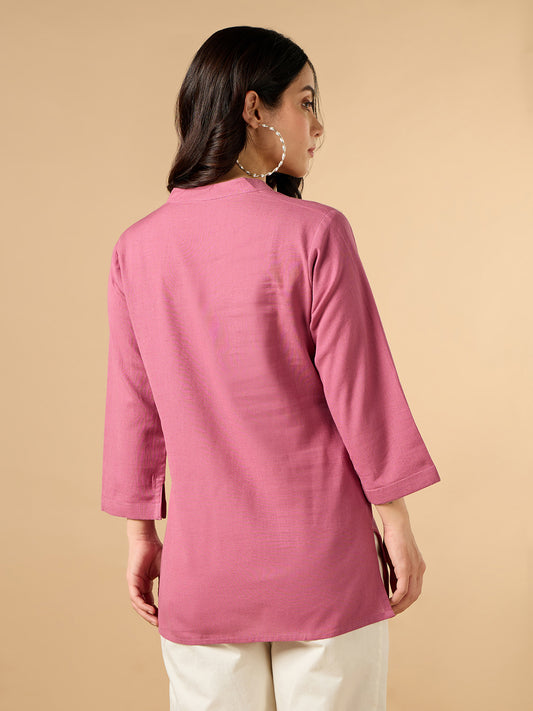 Classic Linen Watermelon pink Short kurta