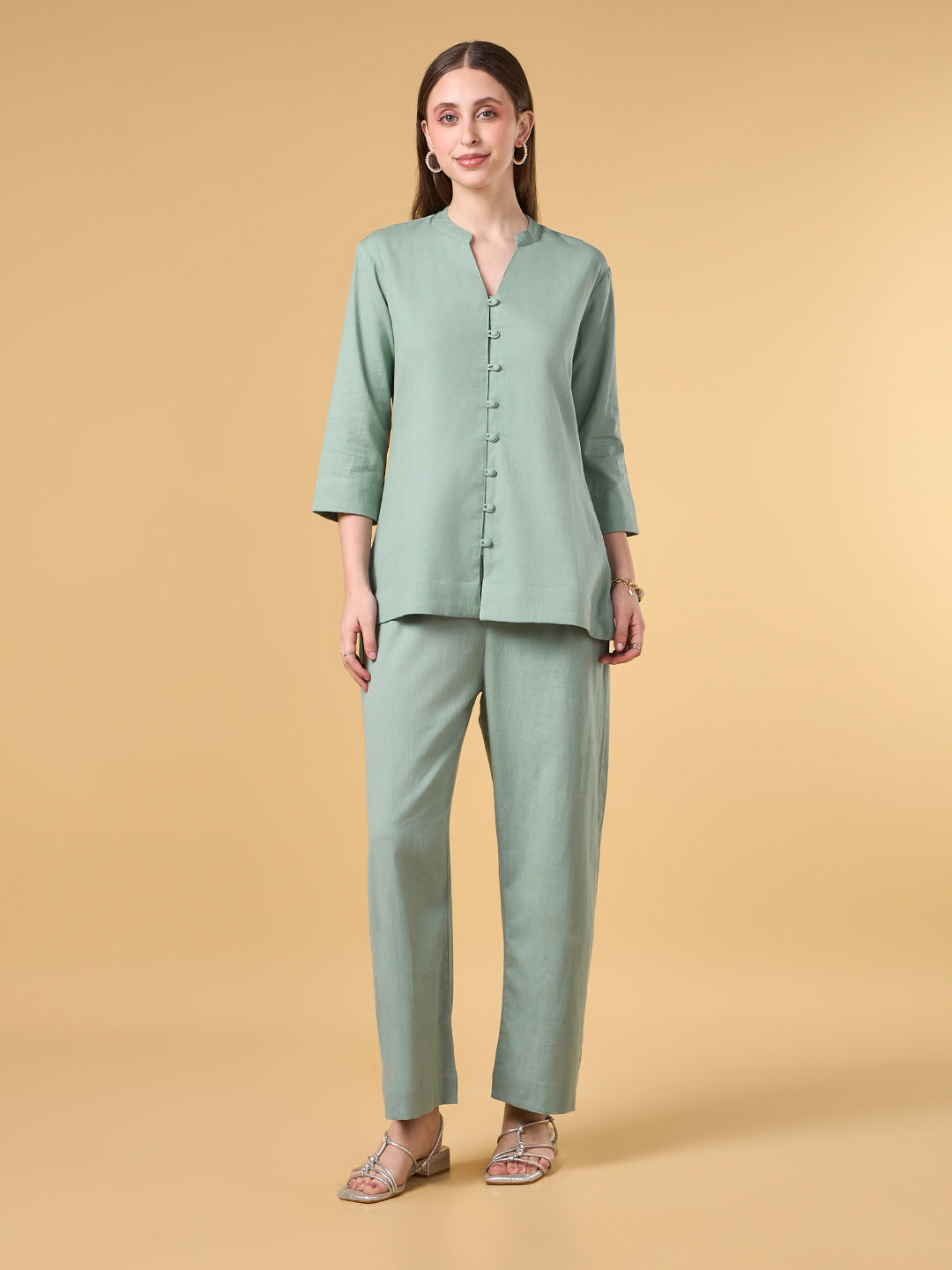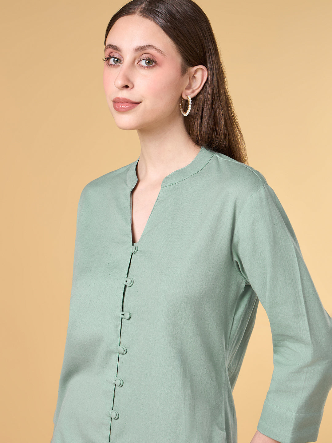 Stay effortlessly stylish in our Cloud Grey Solid Cotton Co-ord Set. Designed in premium cotton, this solid co-ord set brings together comfort, breathability, and timeless charm, making it your go-to outfit for any occasion. The elbow sleeves and collar neck add a structured, modern look, while the regular fit ensures an easy, flattering drape. Pair it with statement earrings or flats for a complete look.