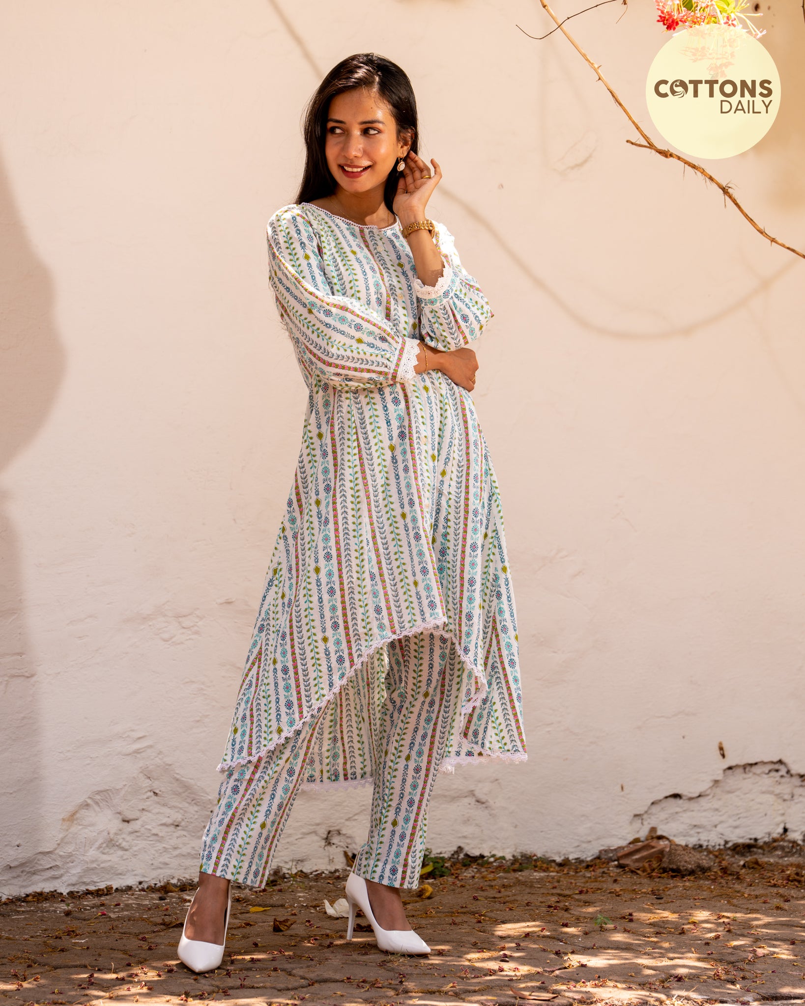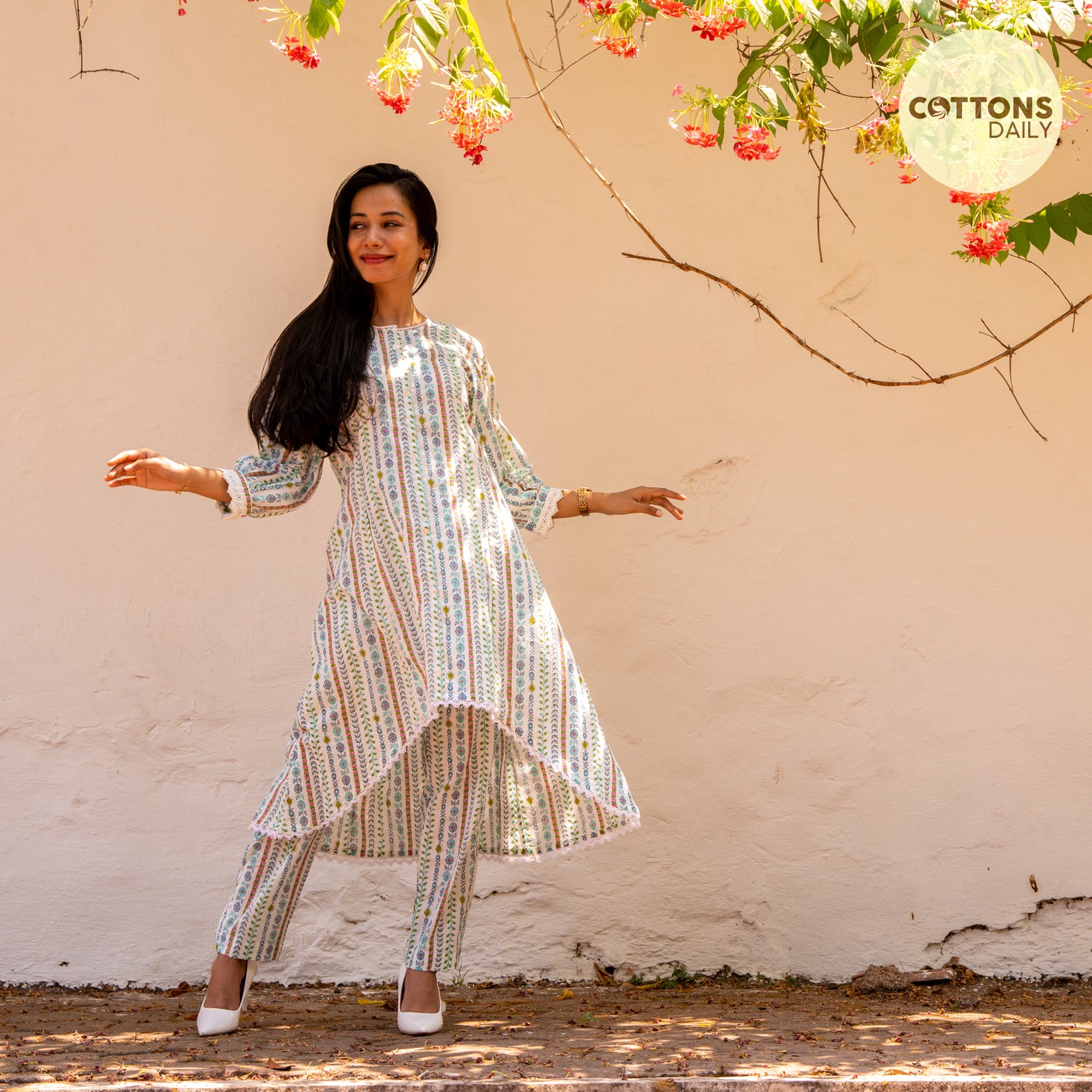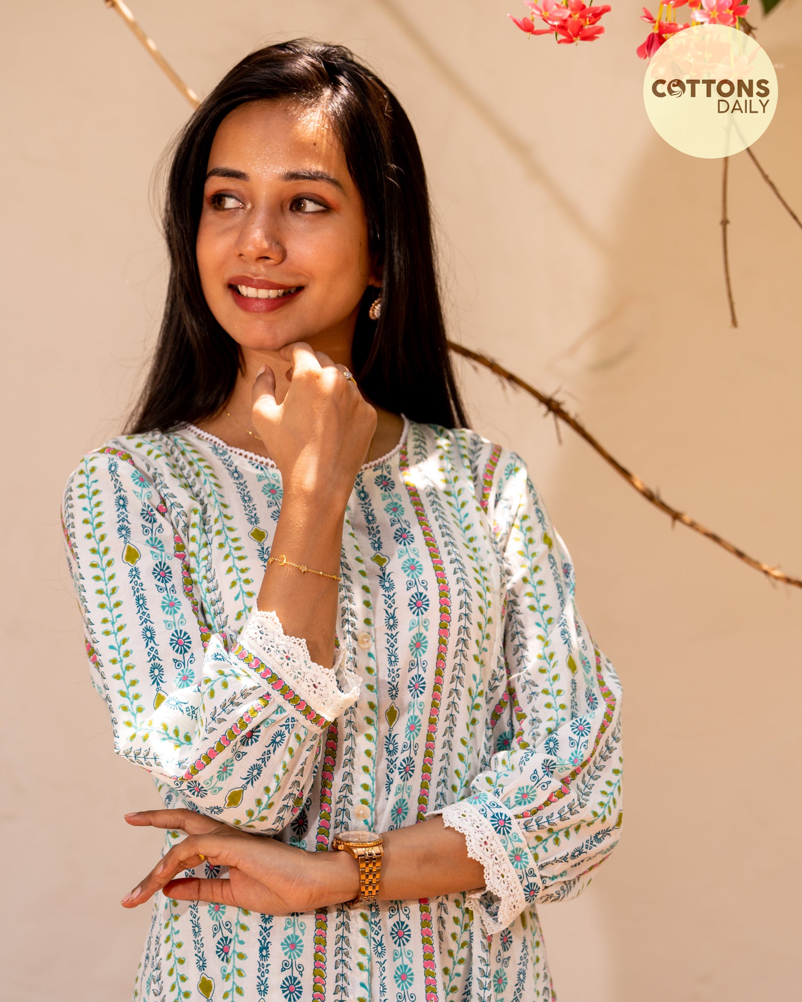 Breezy Blue Jaal Handblock Print Cotton Kurta