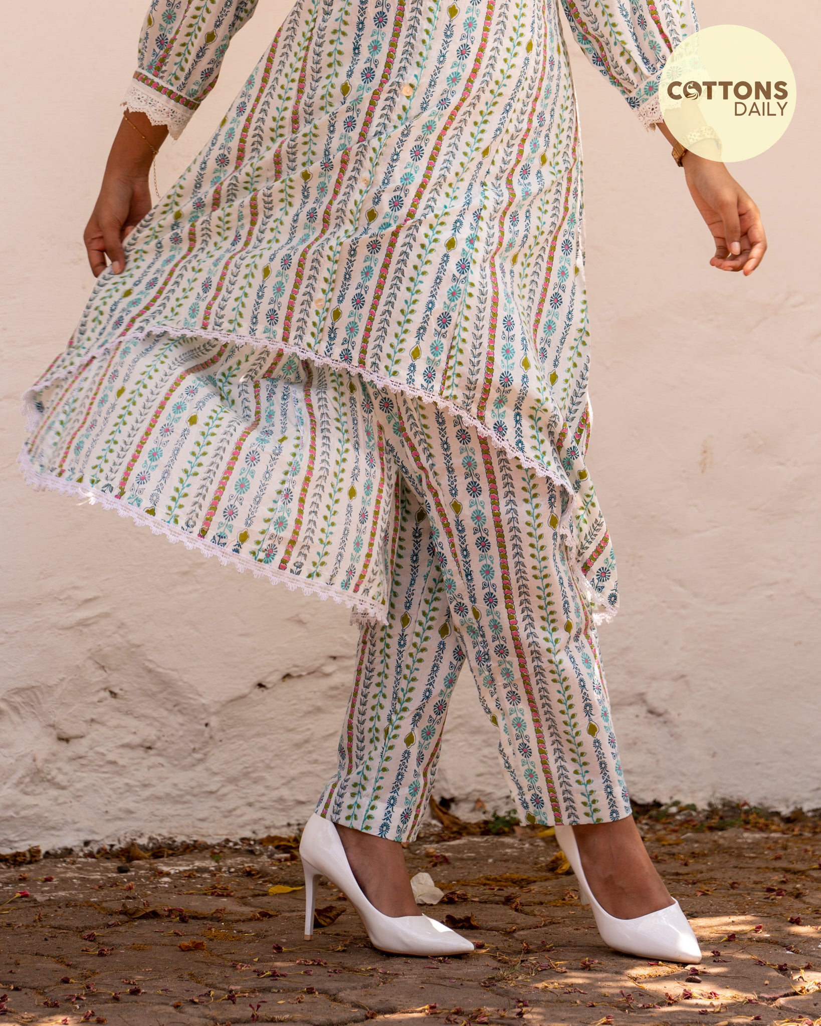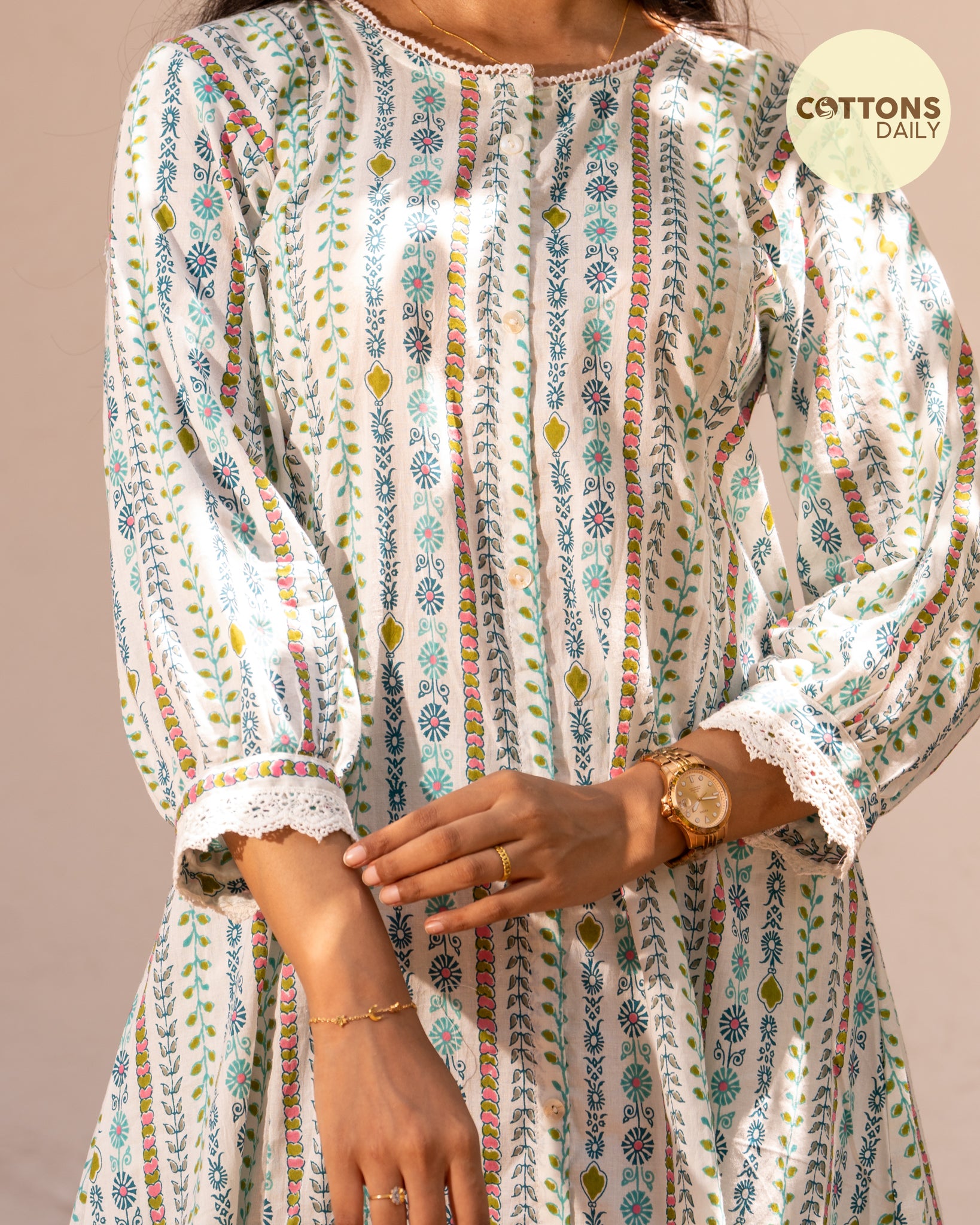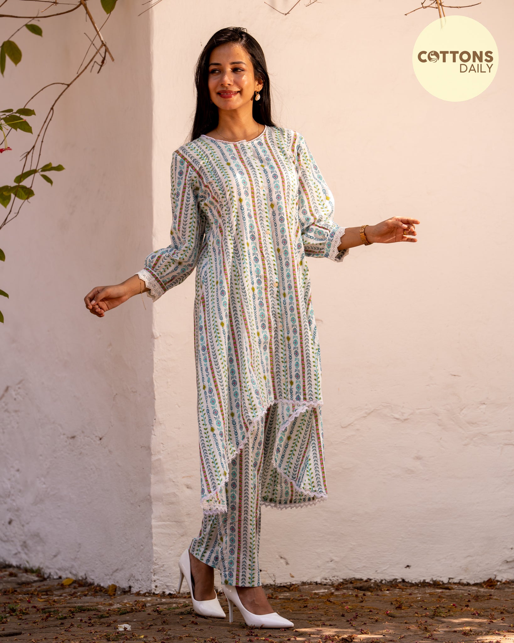 Breezy Blue Jaal Handblock Print Cotton Kurta