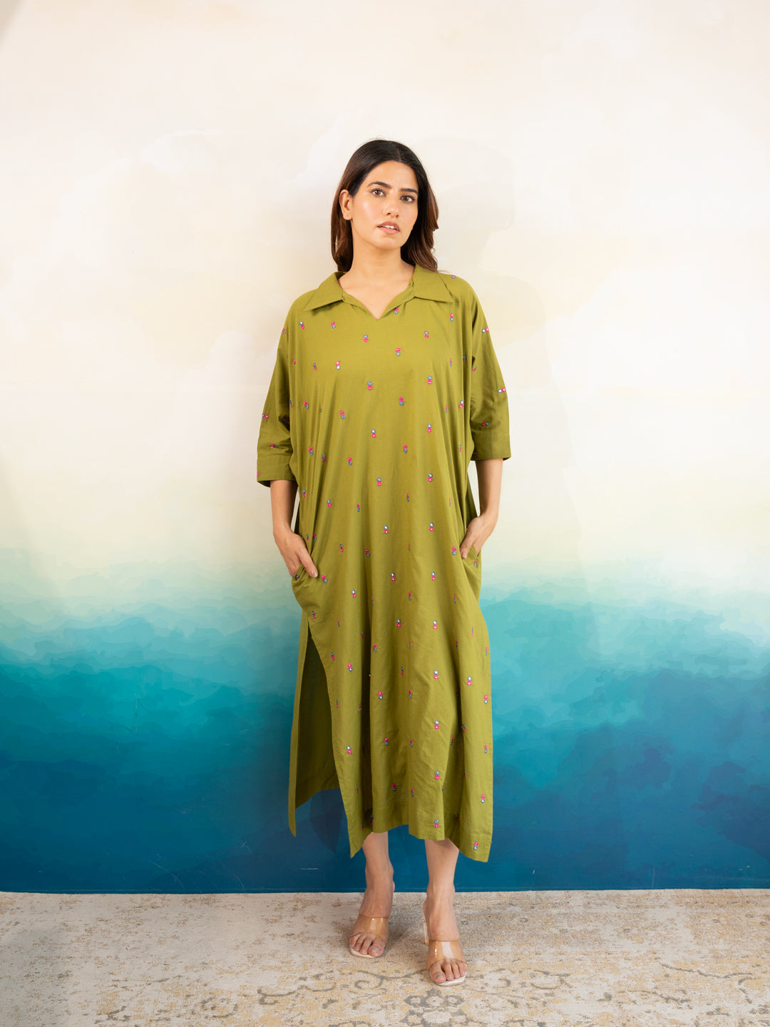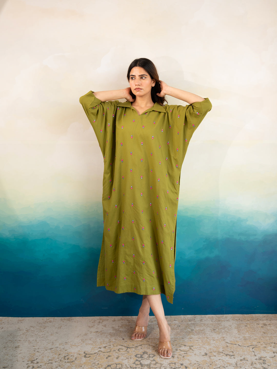 Cotton Dresses for Women India: Designed with an elegant touch, this kaftan is perfect for those seeking trendy cotton dresses for women with a relaxed yet chic vibe.