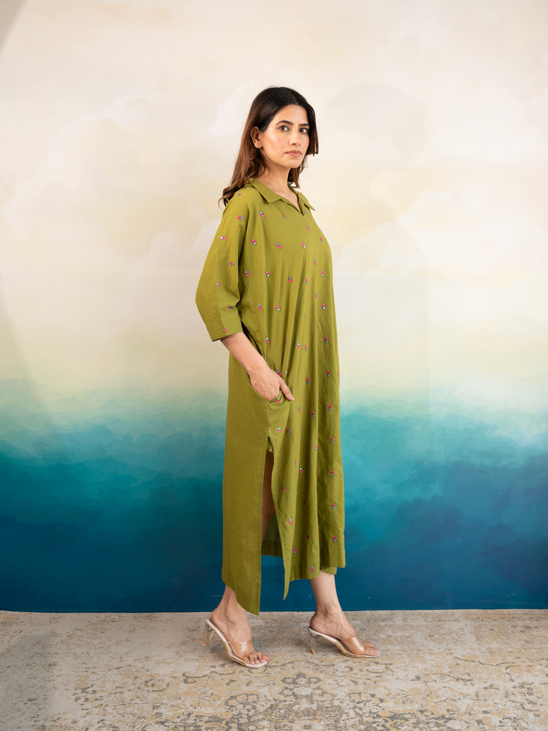 Delicate Embroidery: Features intricate embroidered details, making it stand out as a formal cotton dress for women or a casual outfit.