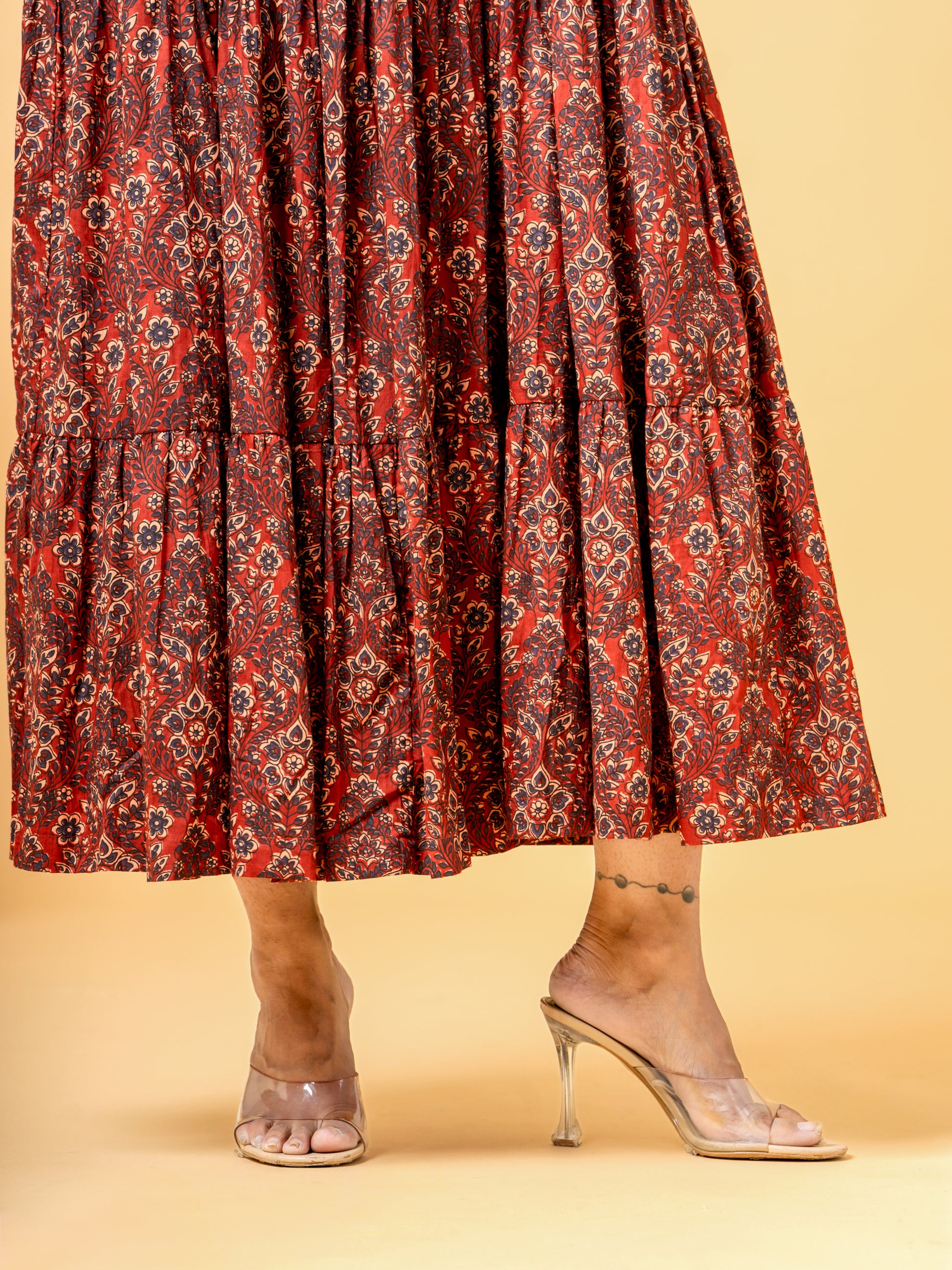 Red Kalamkari Print Goa Holiday Cotton Dress