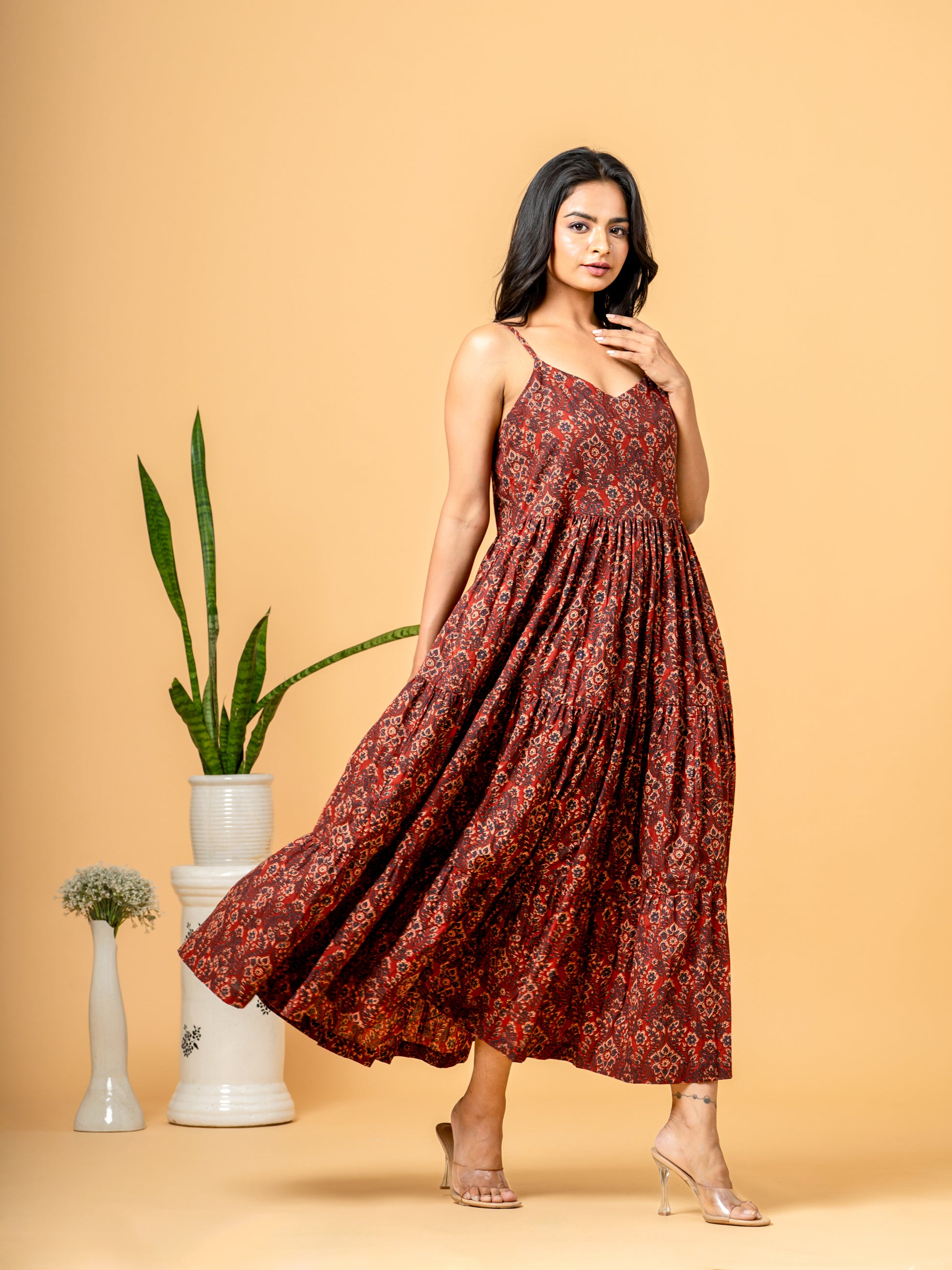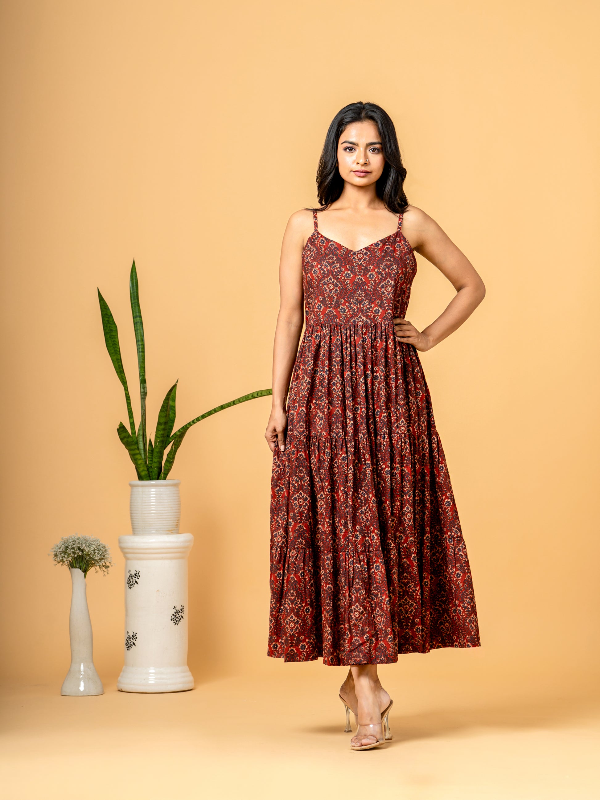 Printed Cotton Dress for Women India: This dress combines traditional Kalamkari patterns with contemporary design, making it a must-have for casual cotton dresses for women.