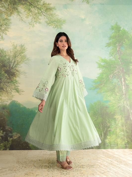 Inaaya Light Green Chanderi Cotton Festive Suit
