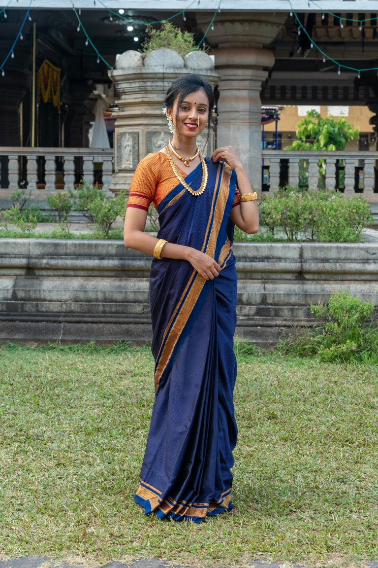 Saree Color : Violet with Contrast Navy Blue Gold Border