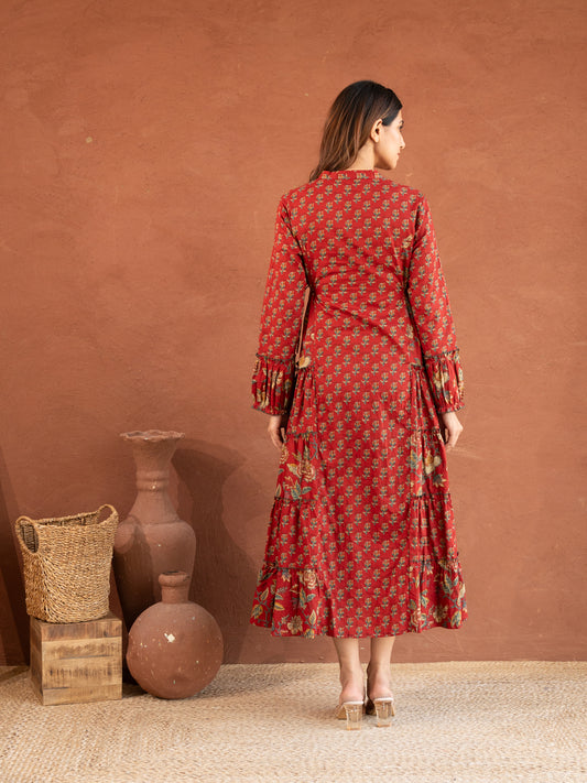 -41% OFFCherry Red Floral Print Cotton Dress