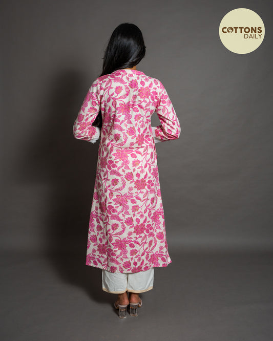 -48% OFFPink Floral Patterned Kurta Set