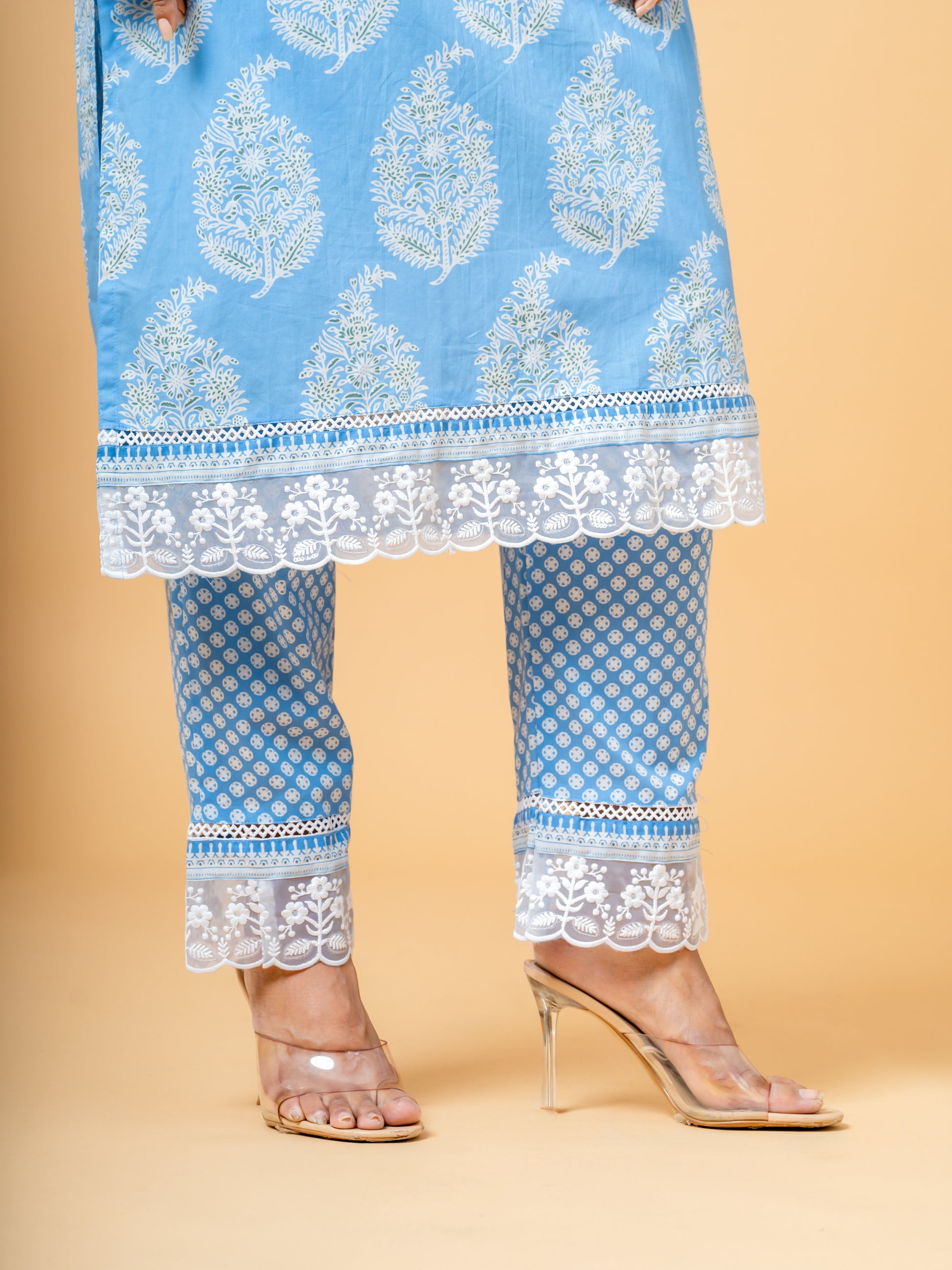 Breezy Blue Jaal Handblock Print Cotton Kurta
