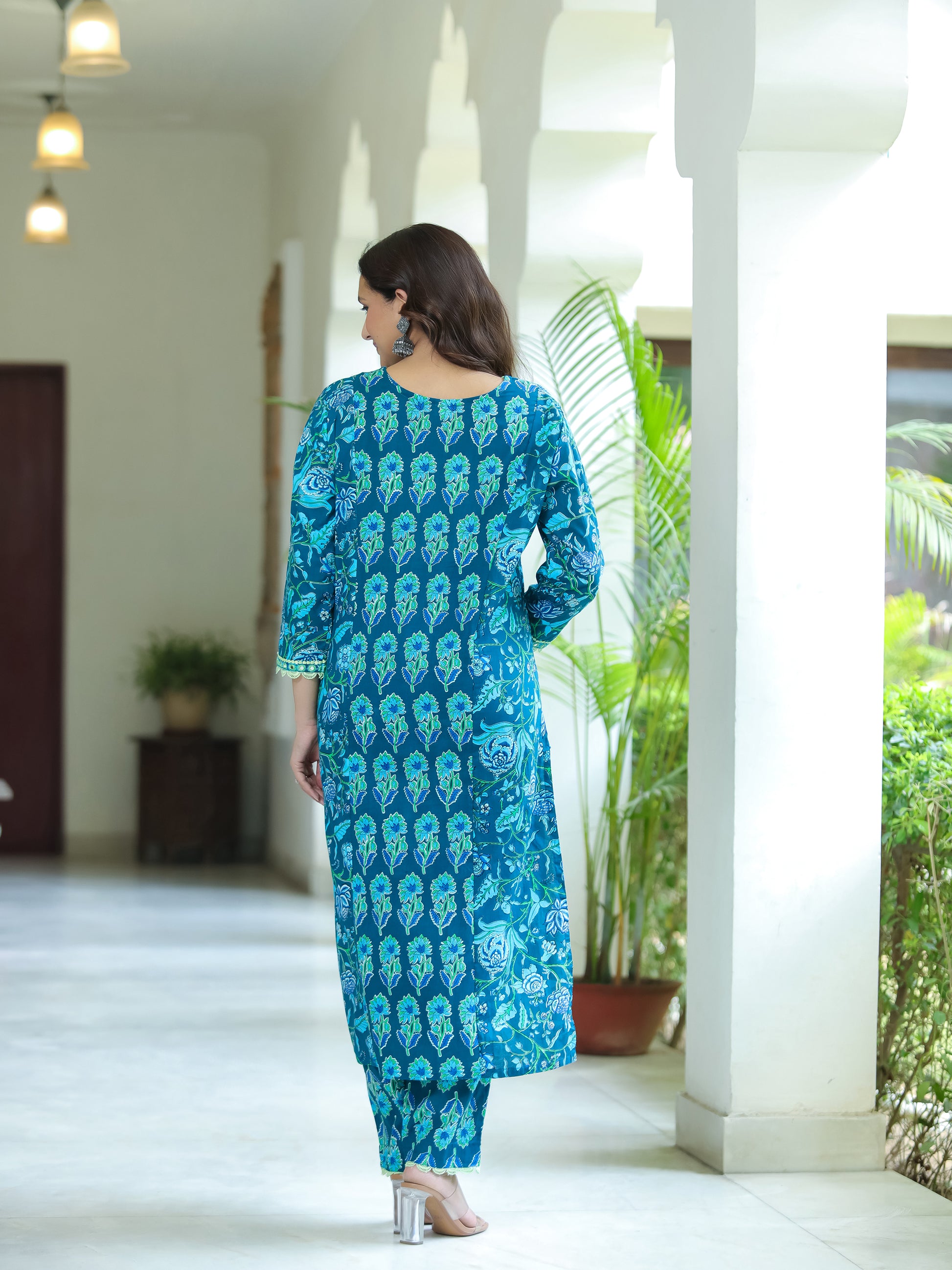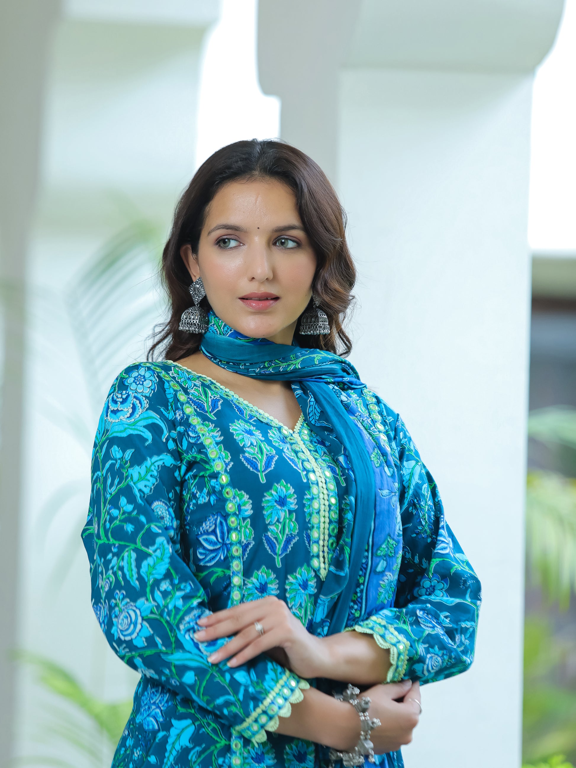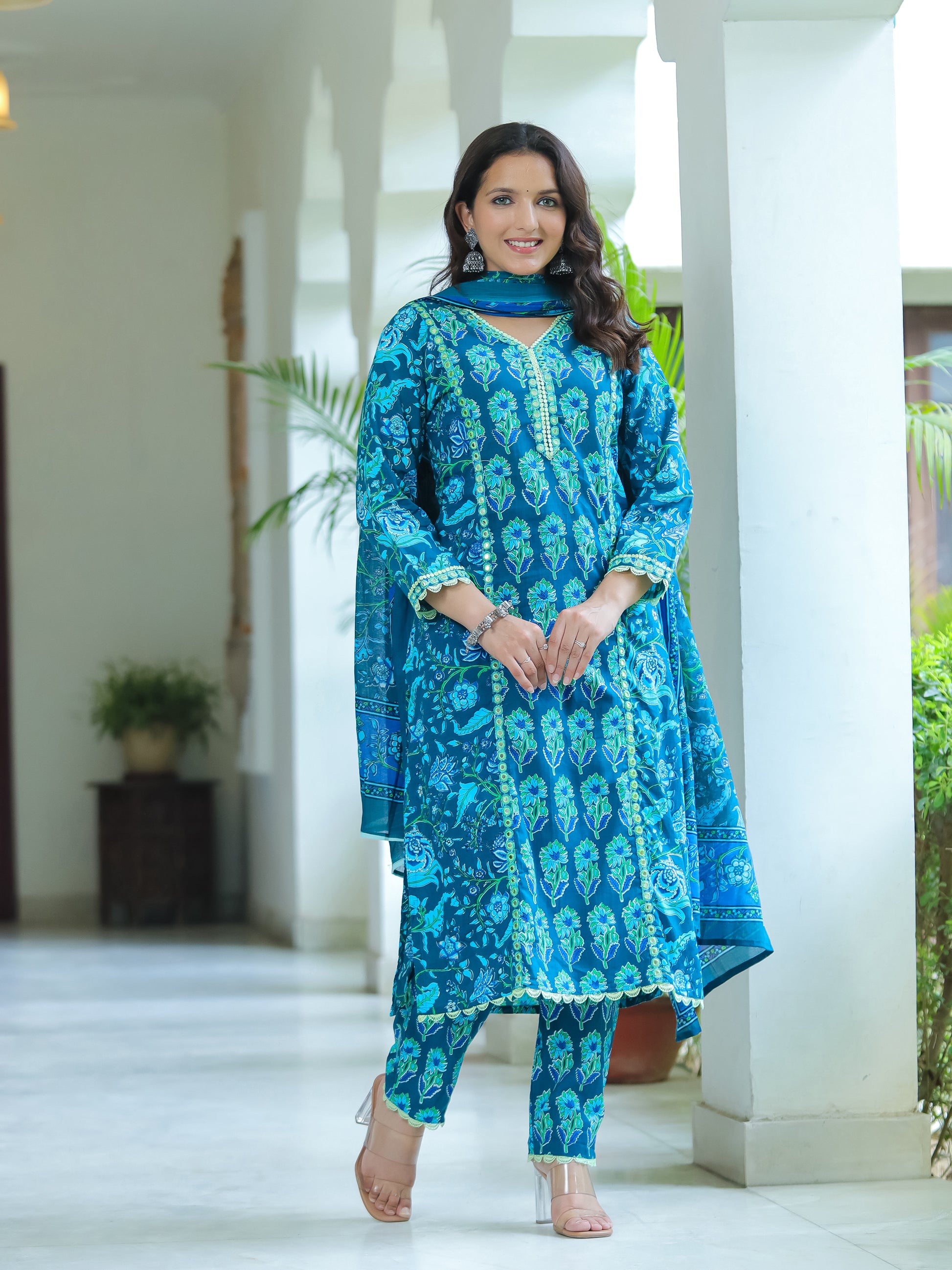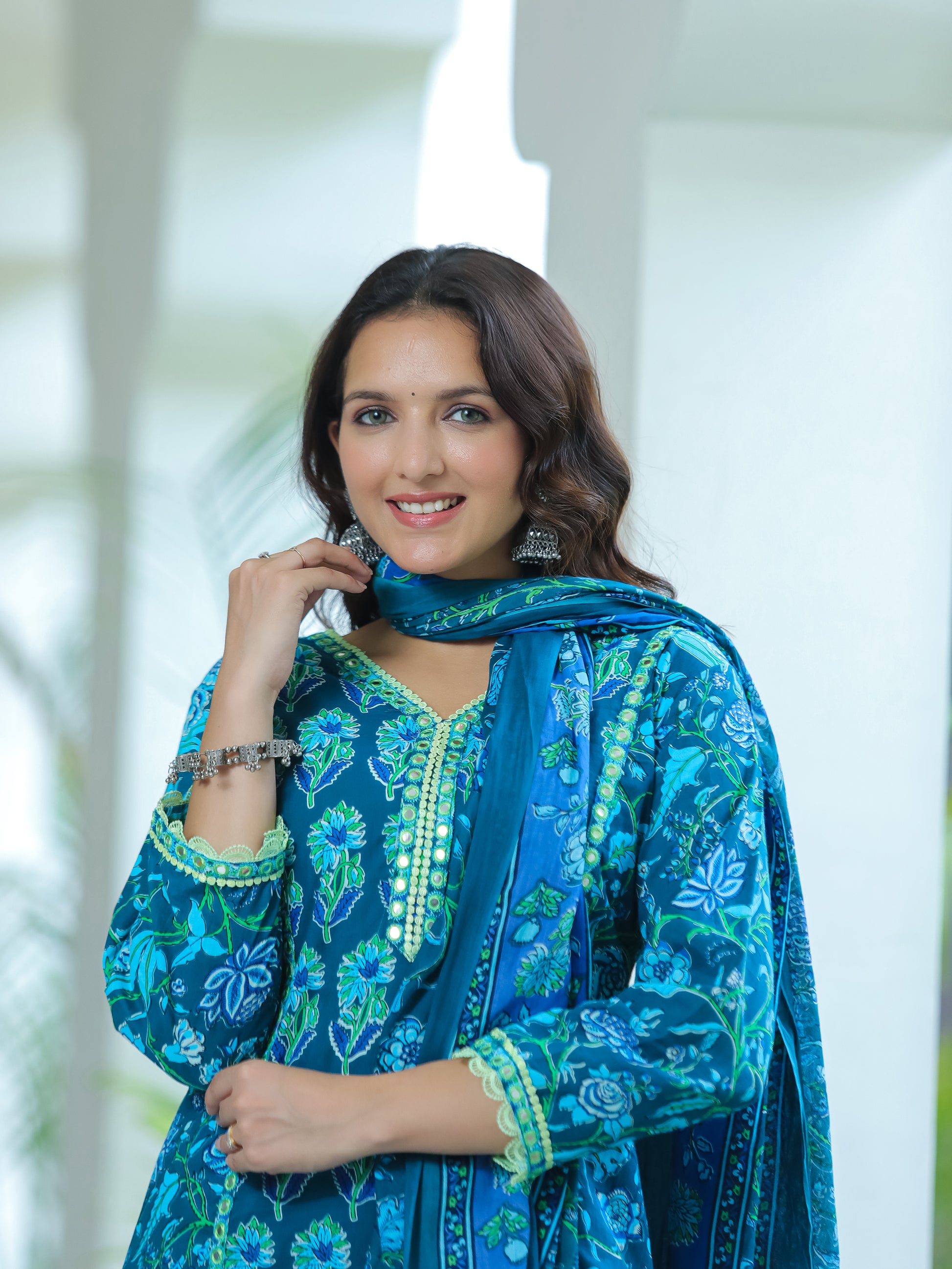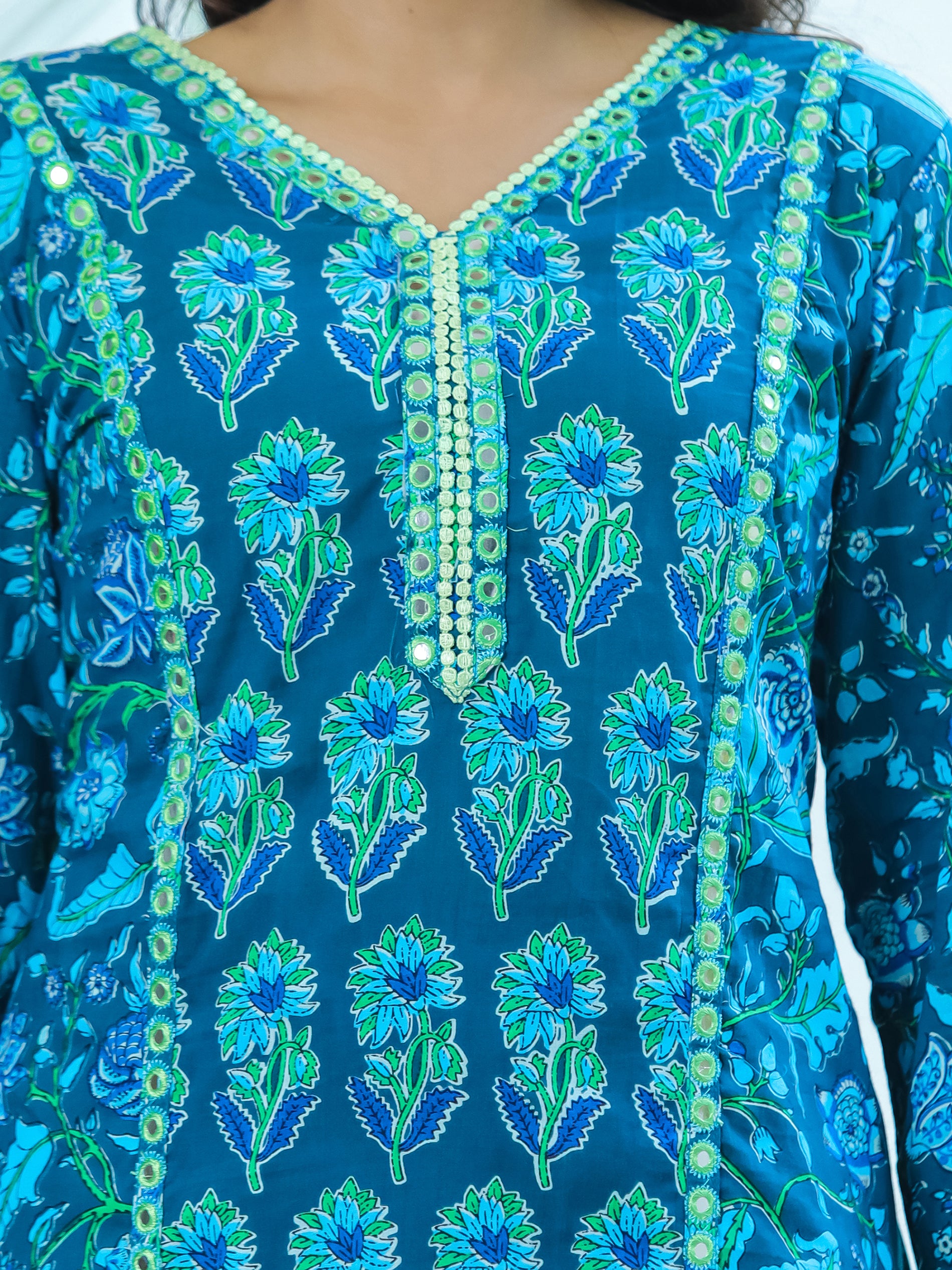 Ocean Blue Mirror Work Cotton Suit