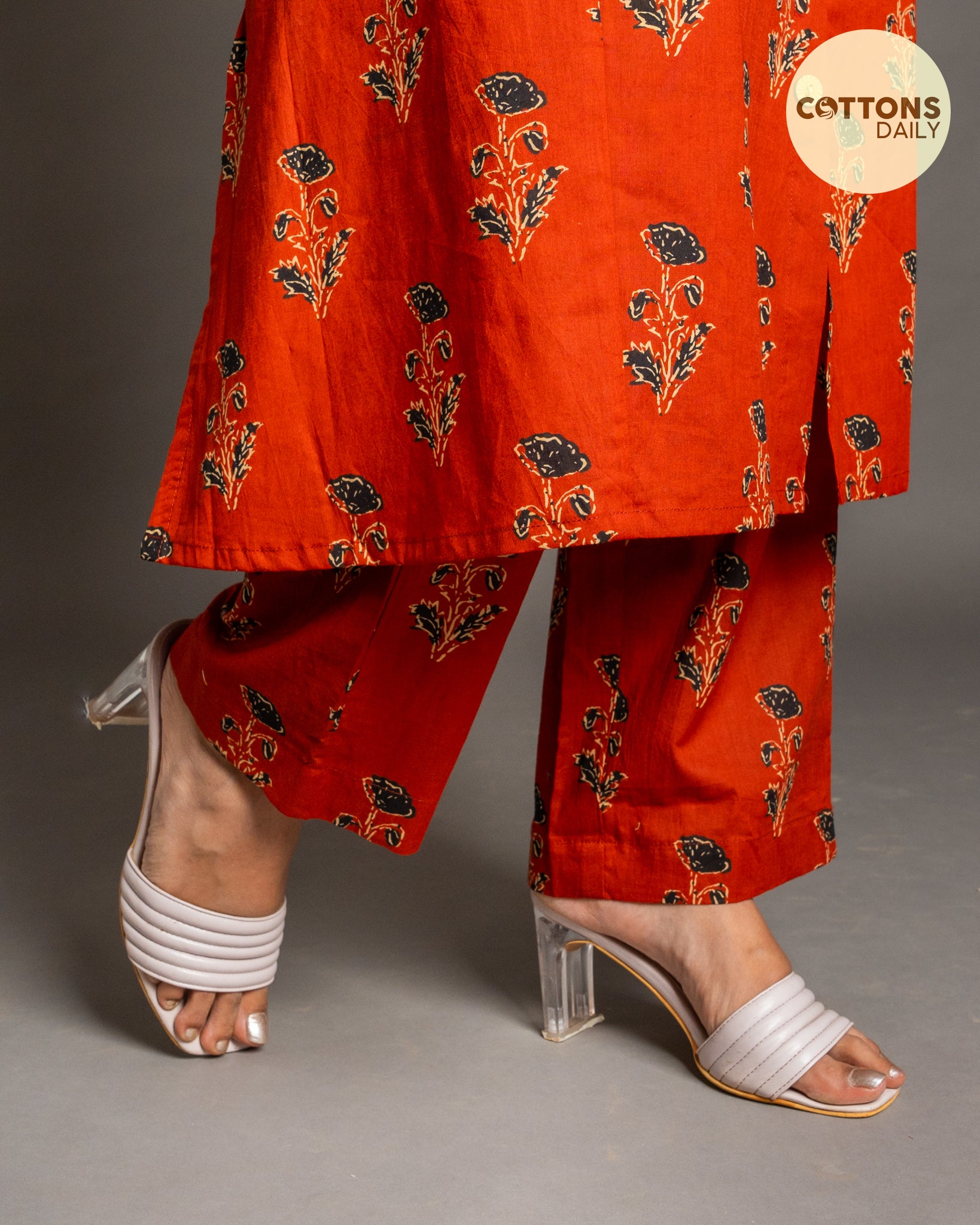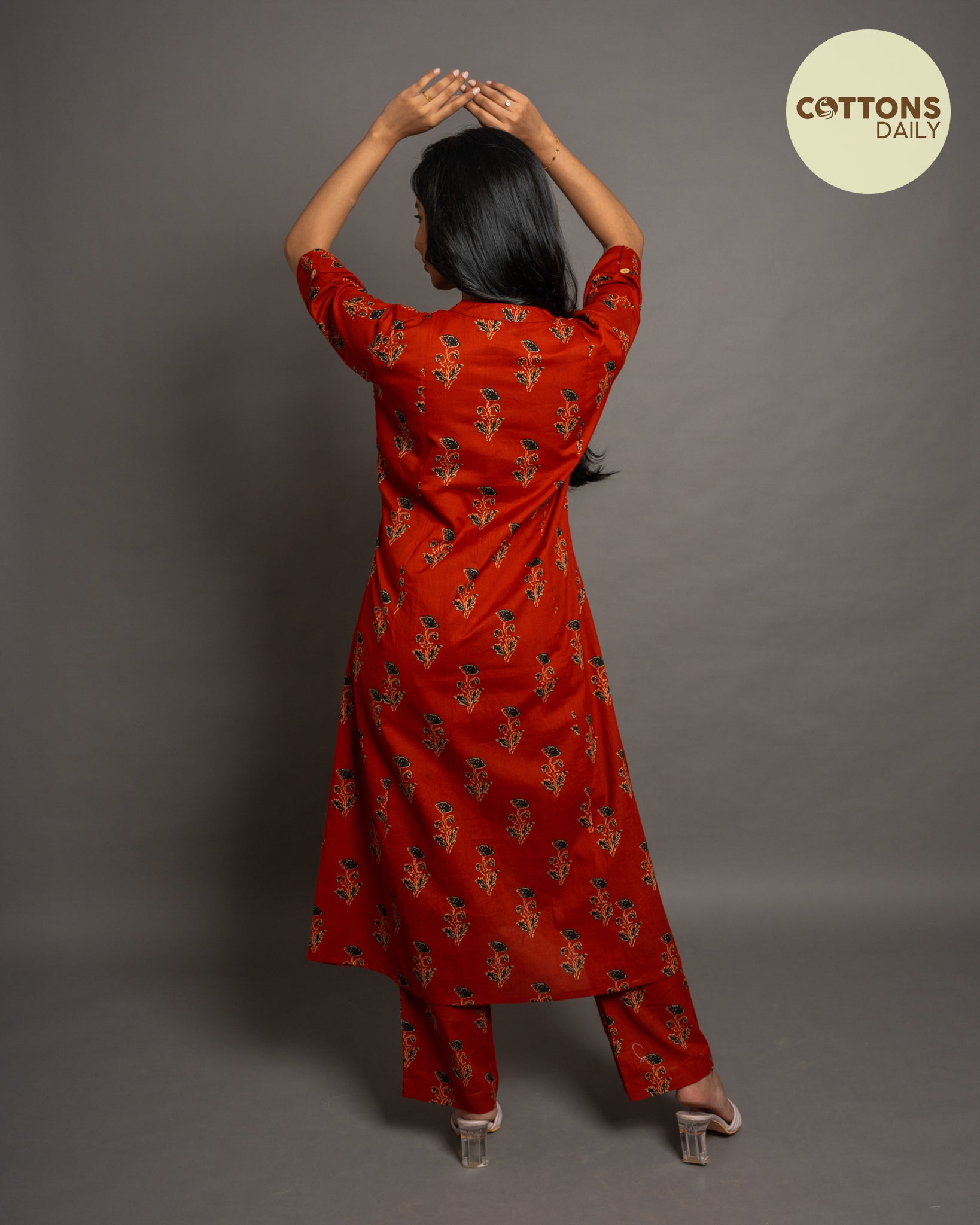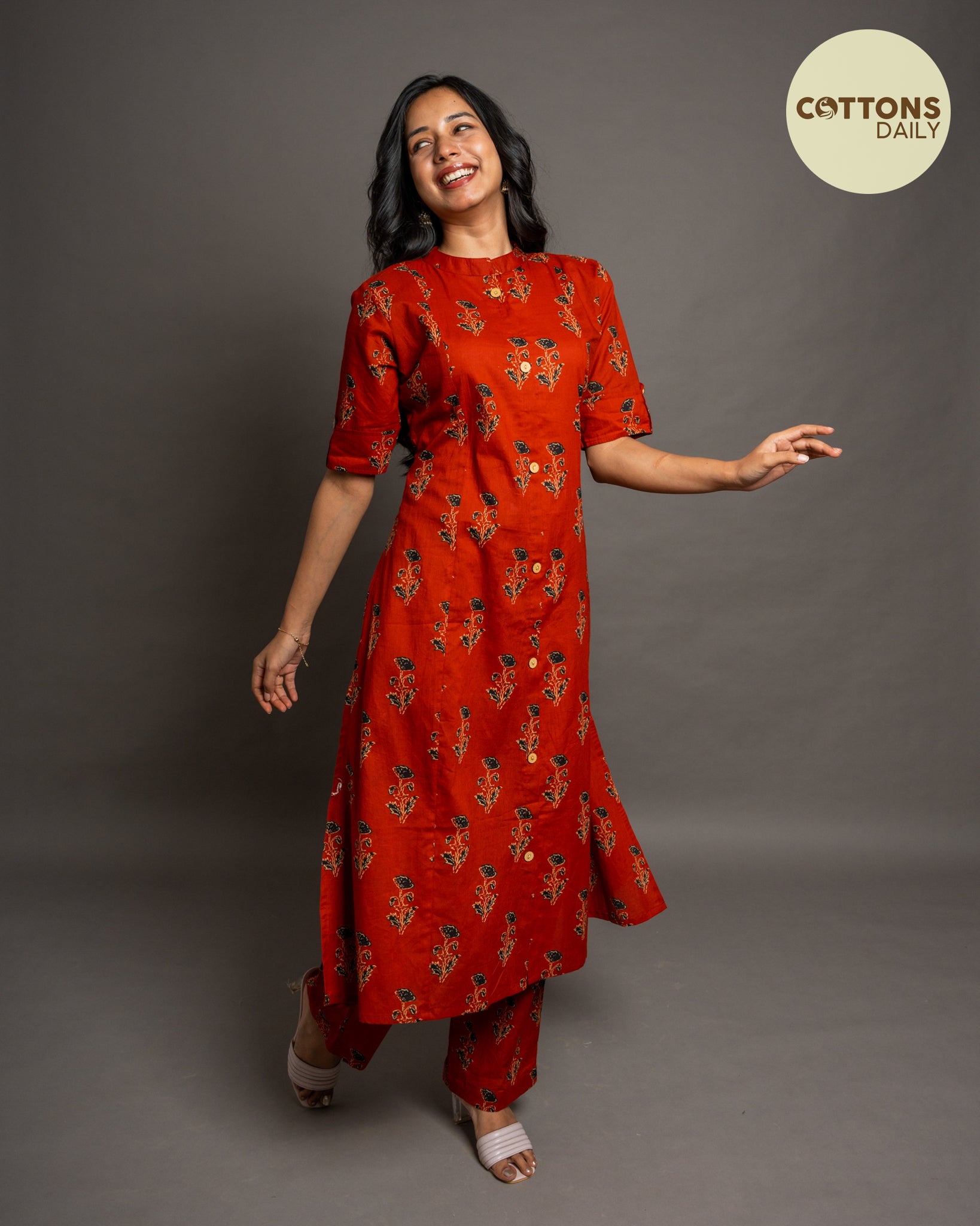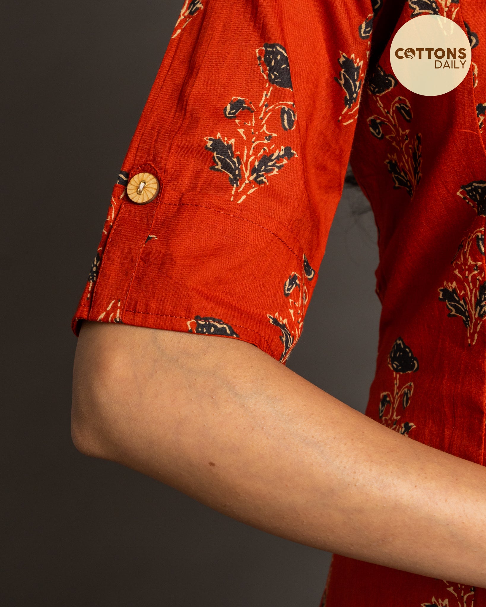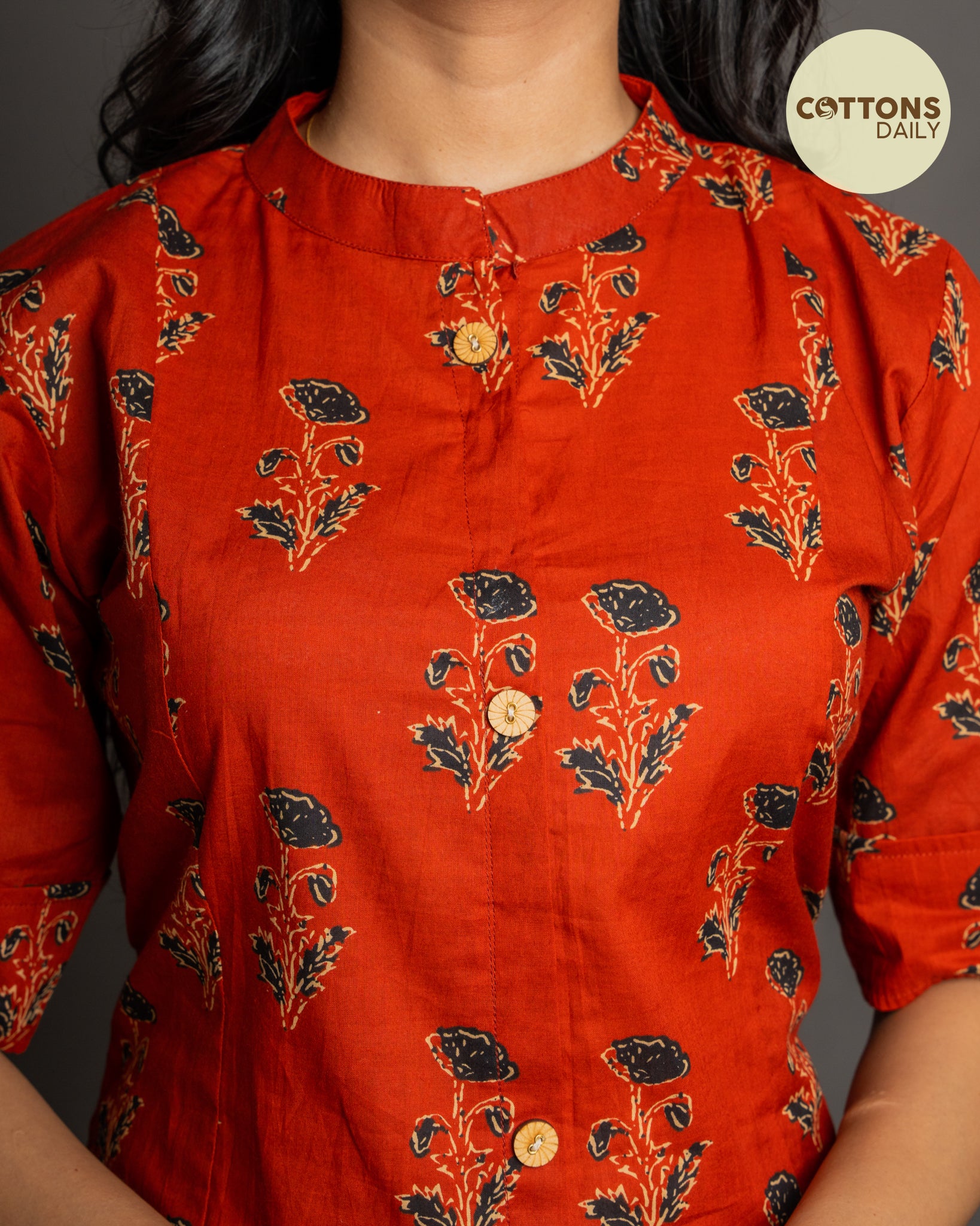 -74% OFFRed Palm Leaf Printed Cotton Kurta