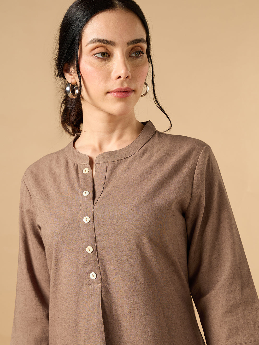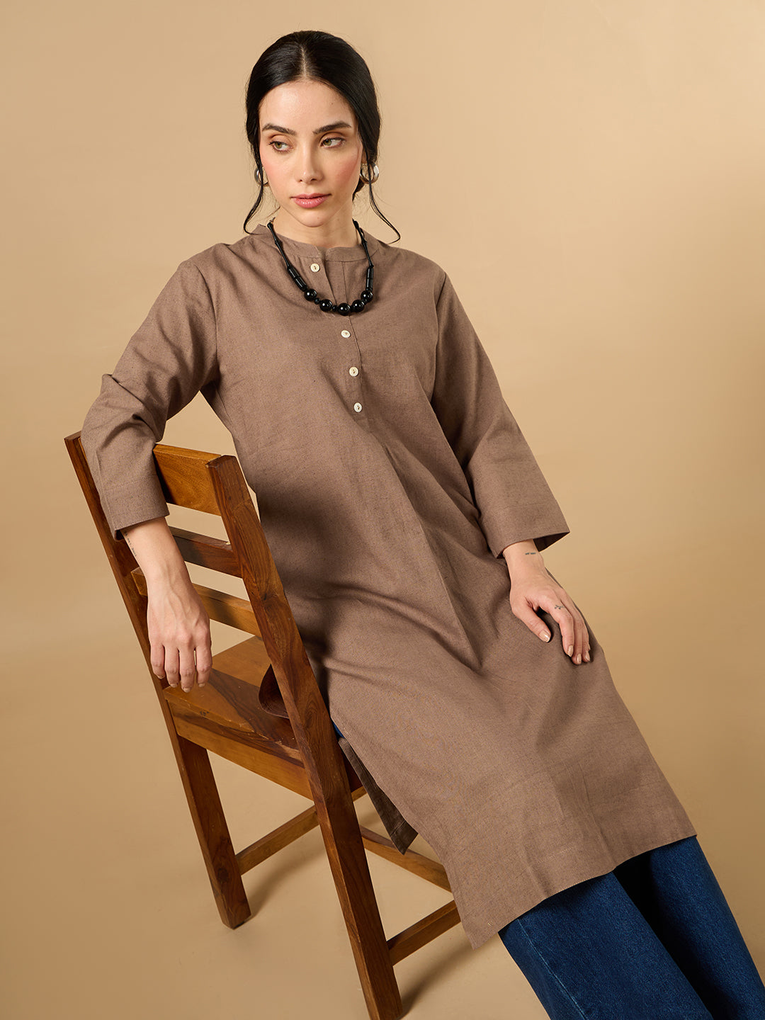 Elevate your style with the Classic Linen Light Brown Straight Long Kurta, a perfect blend of comfort and elegance. Designed for versatile wear, it is ideal for casual outings as well as formal settings.