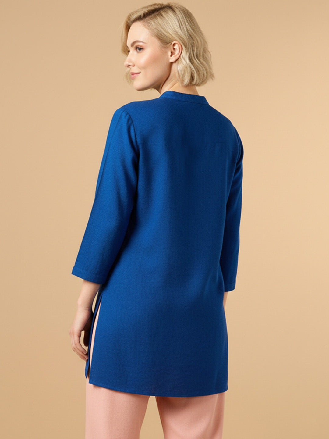 Classic Linen Royal Blue Short kurta