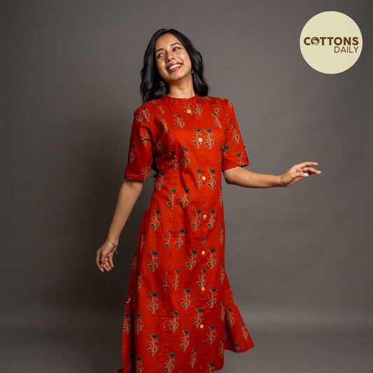 -76% OFFRed Paisley Anarkali Cotton Kurta