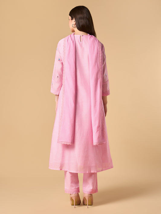 Bubblegum pink Solid Chanderi Cotton Suit