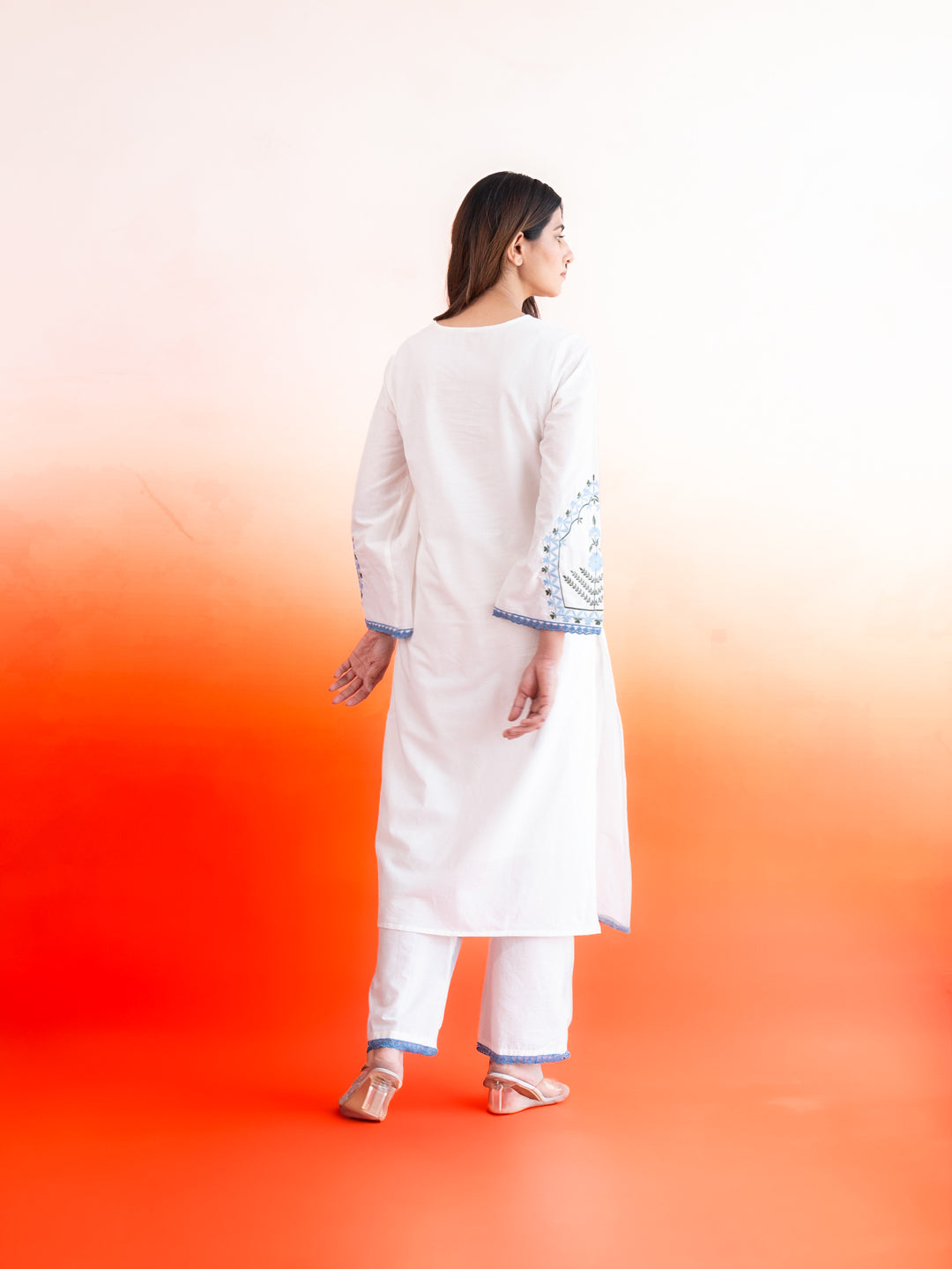 Upgrade your style with the Classic White Blue Lace Work Cotton Suit—where simplicity meets sophistication! 🤍💙