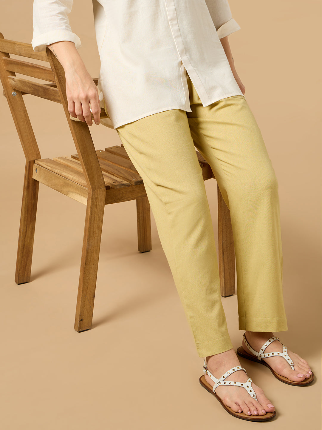 Step into timeless style with our Cotton Smart Pants for Women, designed with the perfect blend of comfort and sophistication. The wide-leg cut offers room to breathe while still looking sharp, making these trousers a must-have for everyday wear. Whether you're running errands, heading to work, or lounging in style, the breathable cotton-linen fabric, smart button closure, and deep side pockets make these pants a functional and fashionable essential. Pair them with a shirt, a breezy kurta, or even a crop top—these trousers are made to elevate every look.