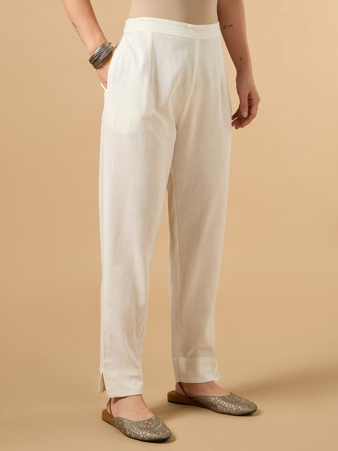 White Cotton Straight Pant