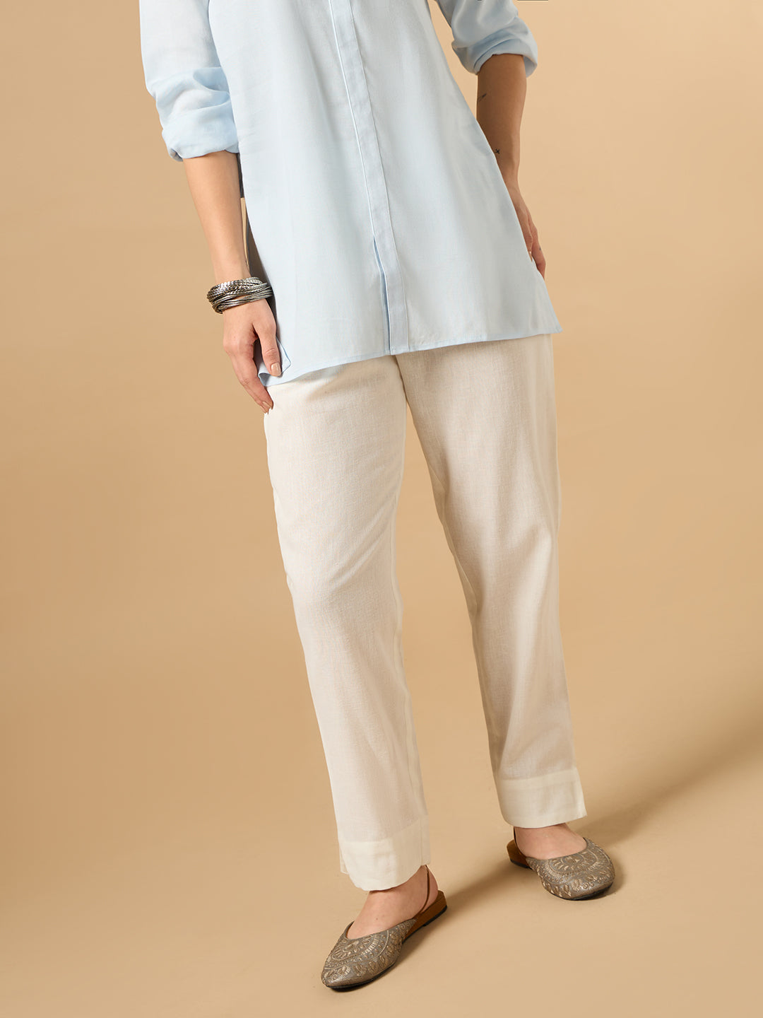 Elevate your everyday wardrobe with these Cotton Straight Pants for Women, designed to strike the perfect balance between comfort and clean, minimalist style. Crafted from a breathable cotton-linen blend, these trousers are ideal for long summer days, office wear, or laid-back weekends. The regular-fit silhouette, coupled with a smart straight cut and practical side pockets, ensures both functionality and flair. Style them with a shirt, pastel kurtas, or oversized tees—these pants are a versatile must-have for your daily closet.