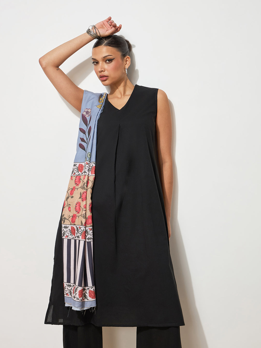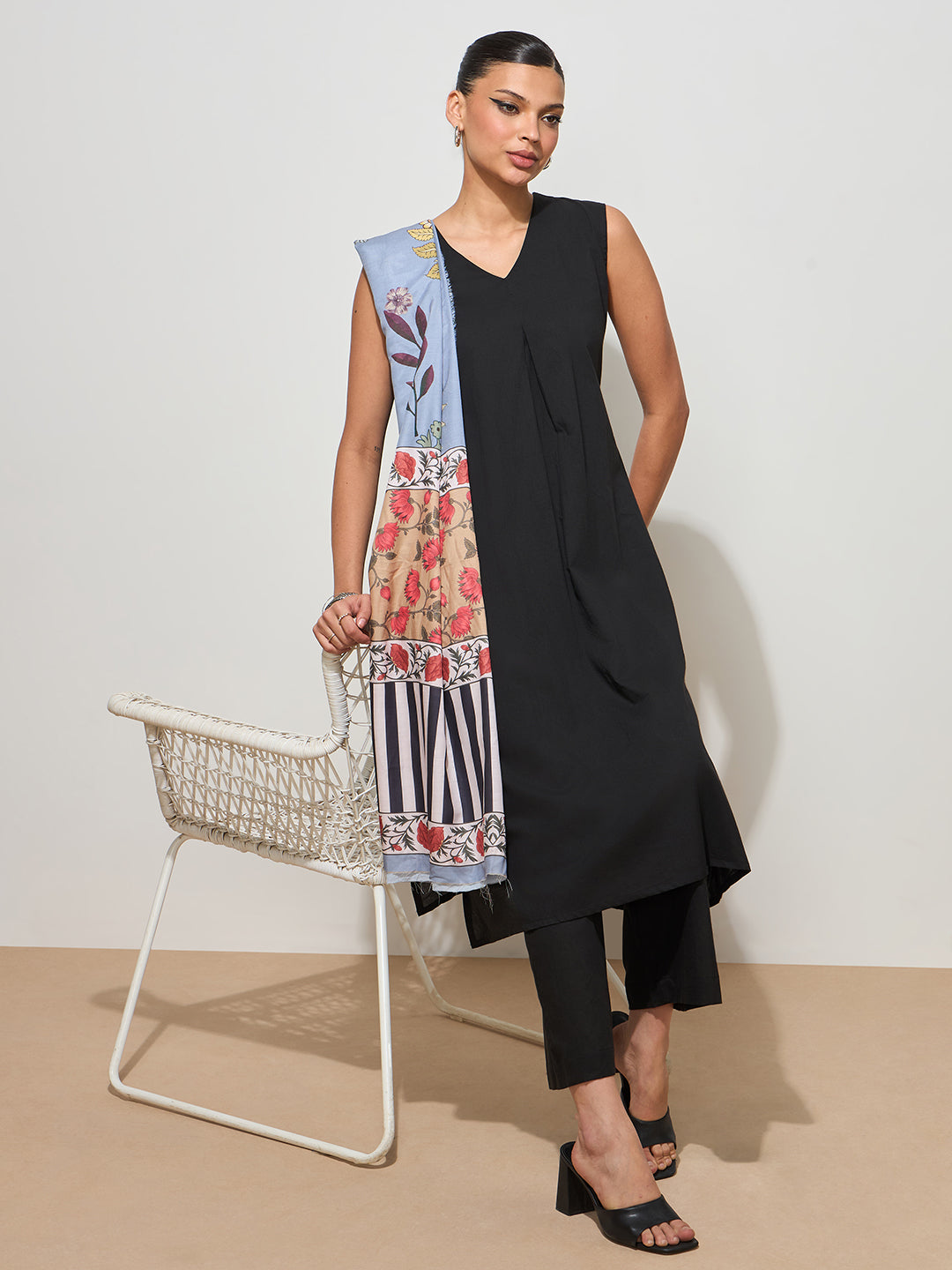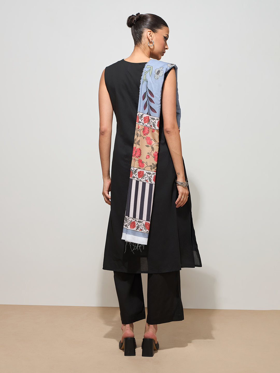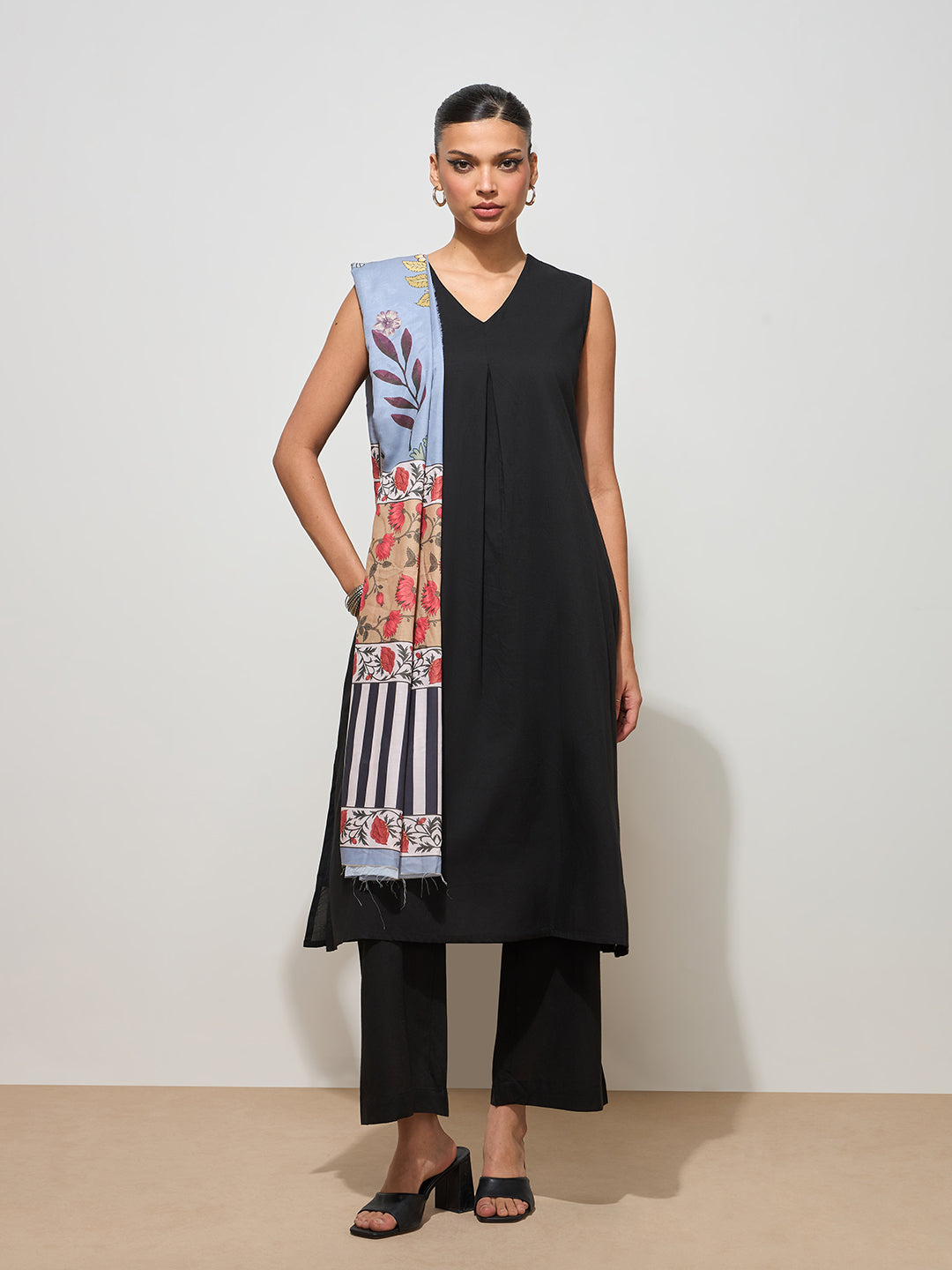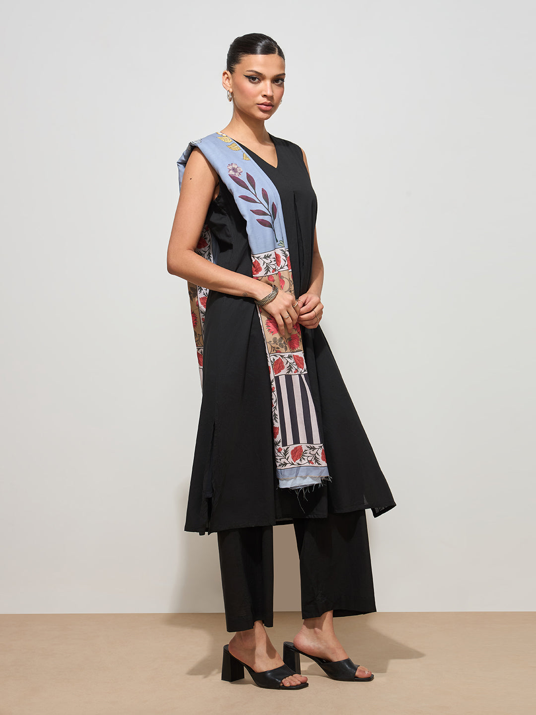 Pastel Peach Brush Painted Chanderi Cotton Suit